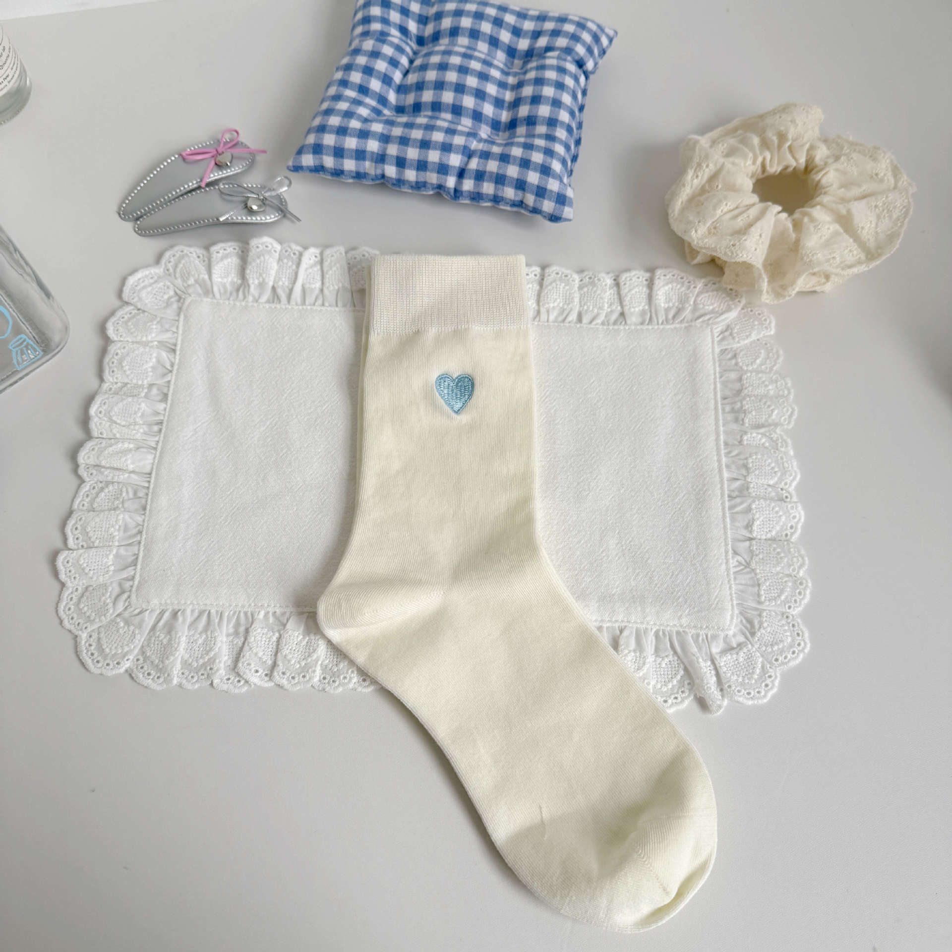 • OI1-725: 밀크 화이트 자수 블루 하트