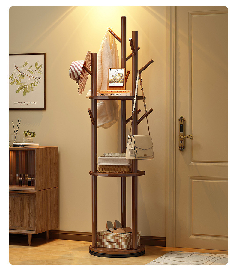 단단한 나무 회전 코트 랙 바닥 수직 옷걸이 침실 가구 빛 럭셔리 스토리지 랙 거실스토어 가기