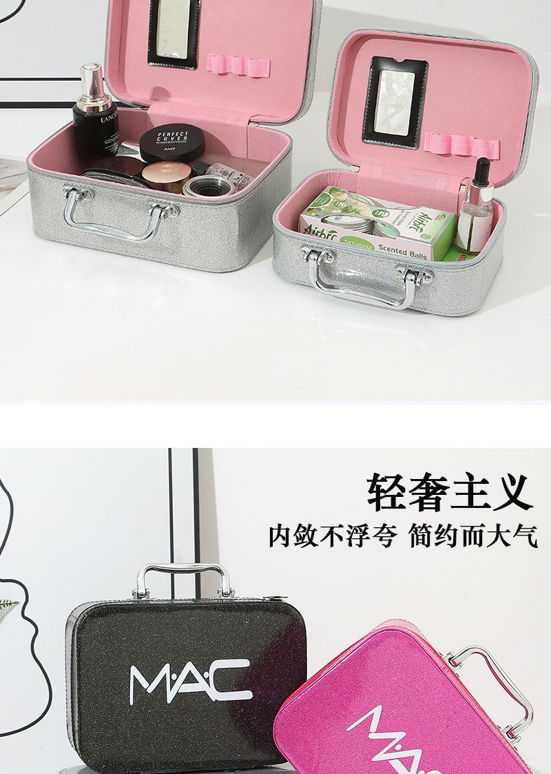 국경 대용량 휴대용 화장품 케이스 밝은 파우더 편지 화장품 가방 어린이 화장품 보관 가방 방수 PU 가죽 케이스스토어 가기