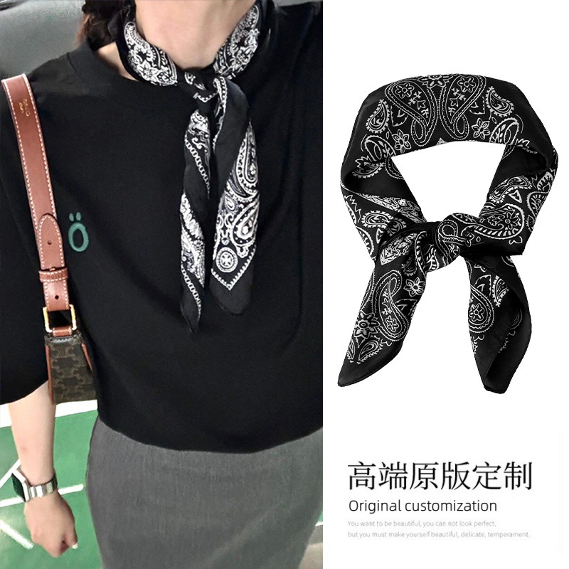 봄과 가을 멀티 사용 작은 실크 스카프 한국 작은 광장 스카프 캐슈 꽃 빈티지 모든 경기 장식 스카프 남성과 여성의 머리 스카프 헤어 밴드 여름스토어 가기