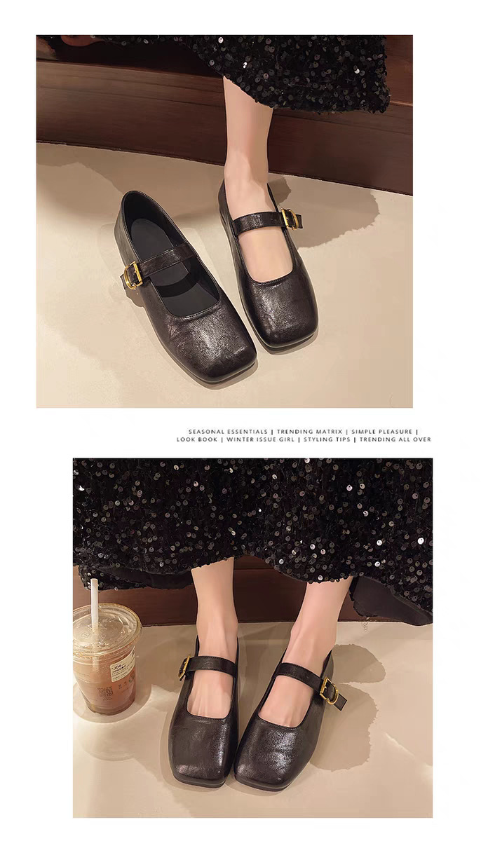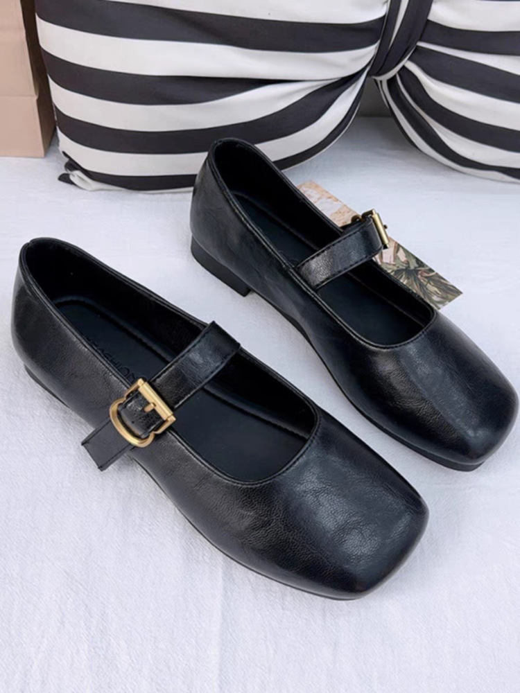 레트로 영국 스타일 플랫 신발 2025 봄 새로운 간단한 광장 발가락 단색 신발 이브닝 스타일 메리 제인 신발스토어 가기