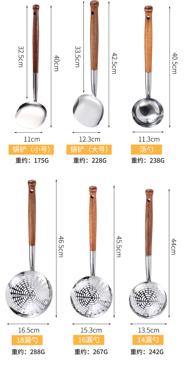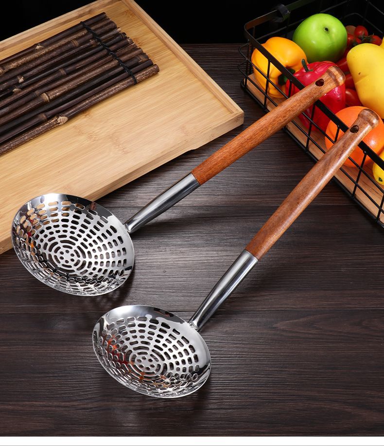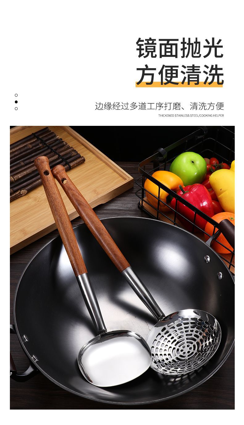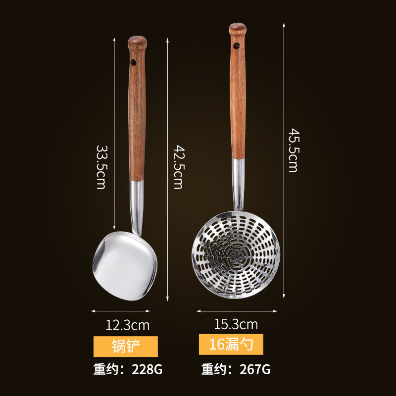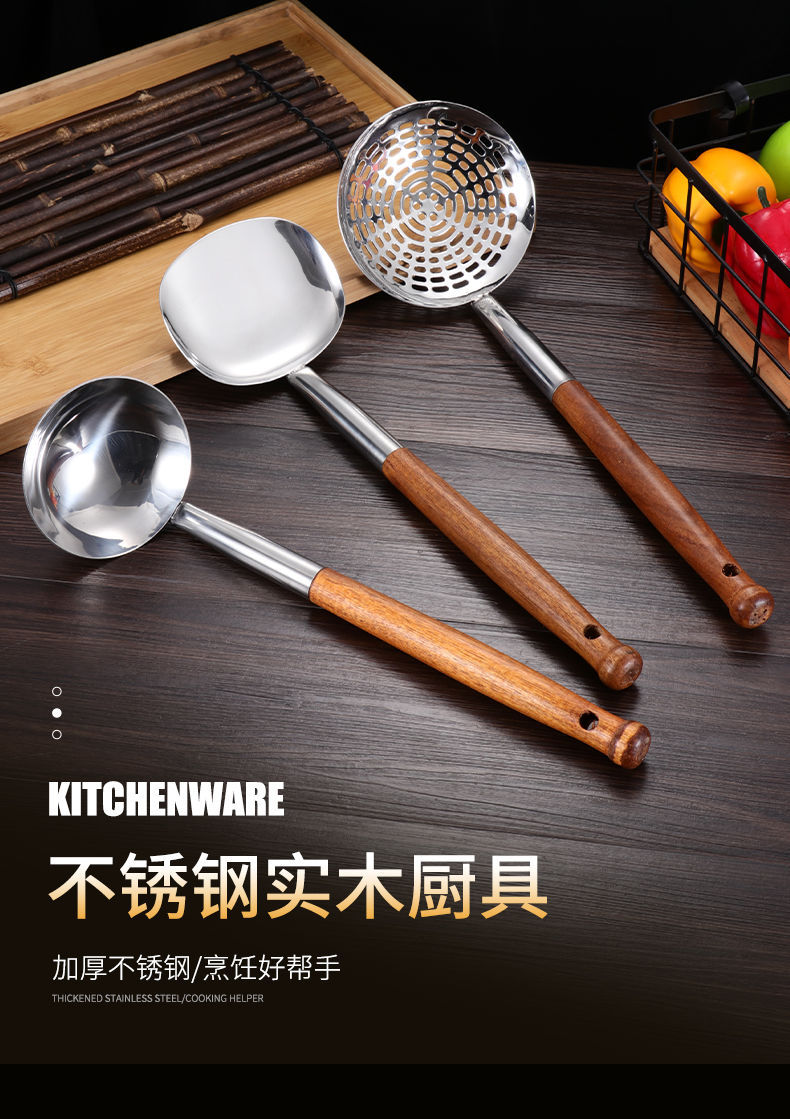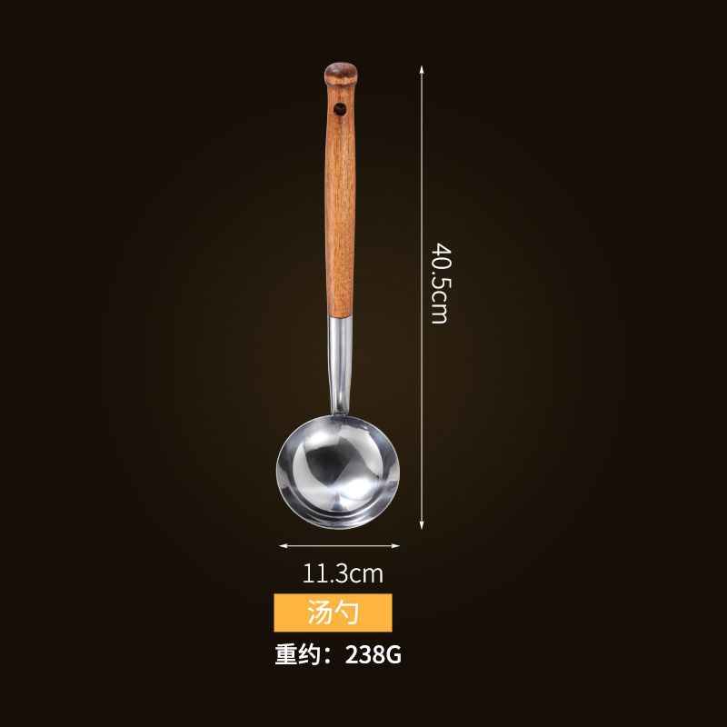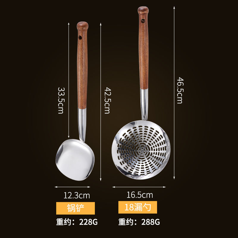 • 두꺼운 나무 손잡이 주걱 + 스푼 +18#누출