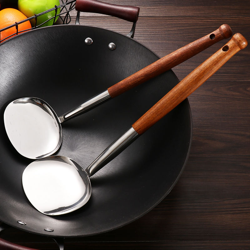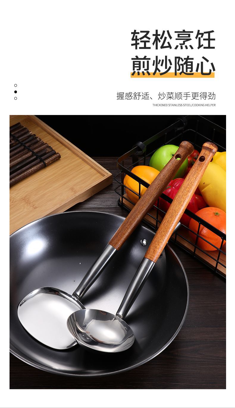 • 두꺼운 나무 손잡이 주걱 + 스푼 +14#누출