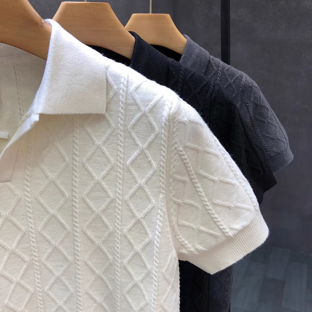 여름 새로운 반팔 스웨터 남성 질감 POLO 셔츠 옷깃 V 넥 슬림 비즈니스 티셔츠 대외 무역 국경 도매