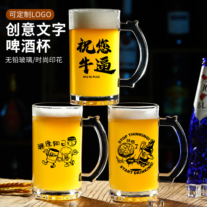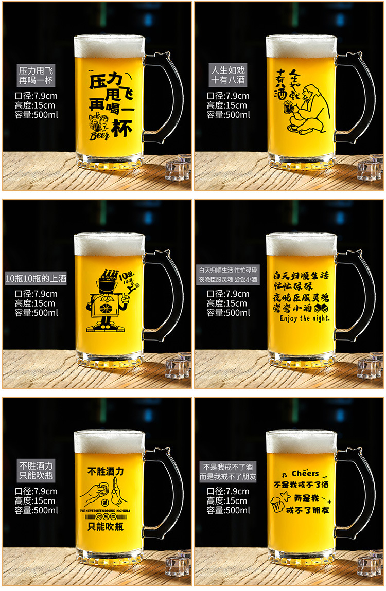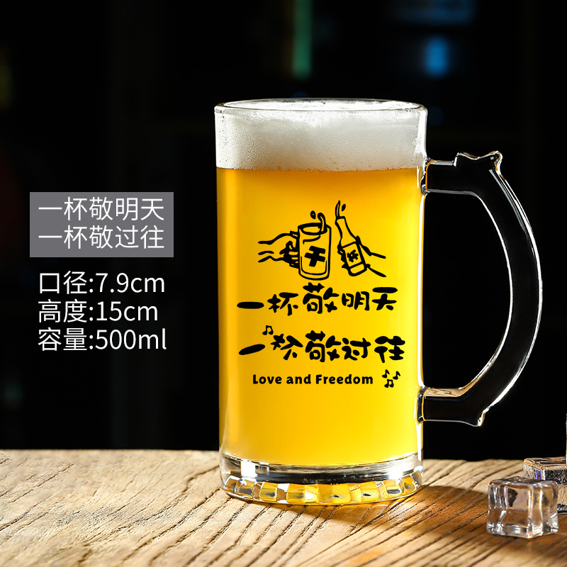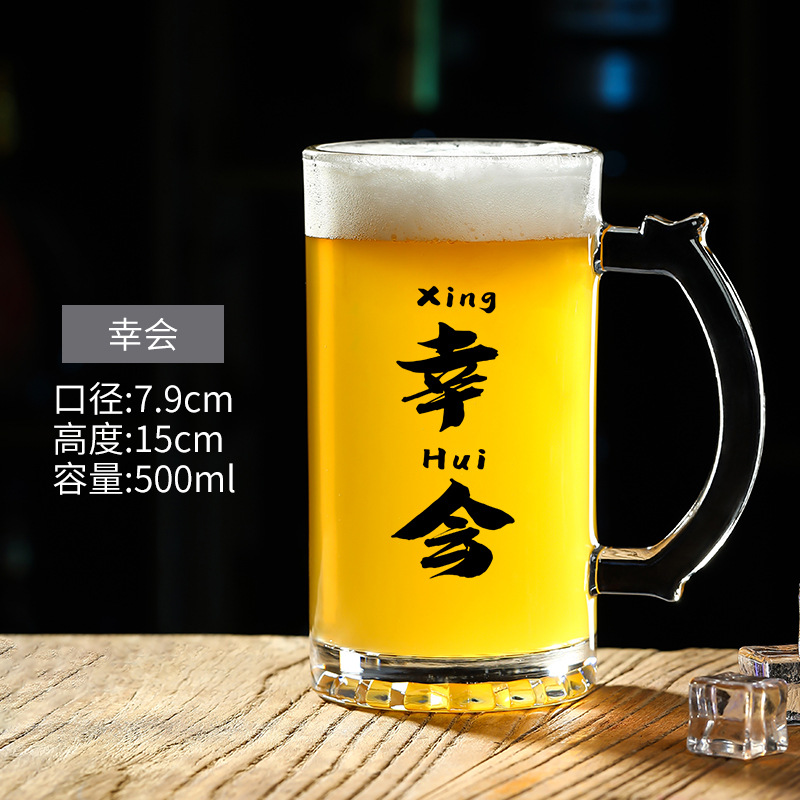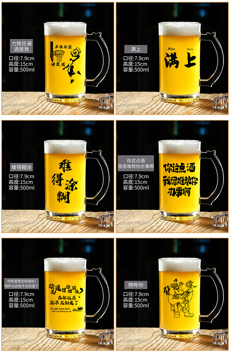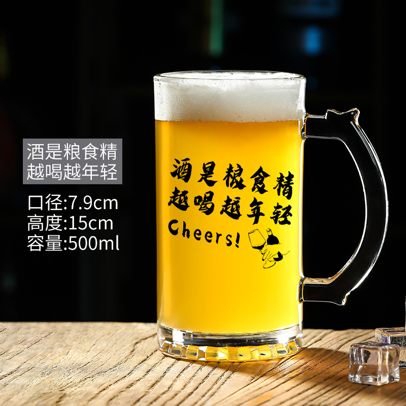 500 ml 맥주 잔 복사 초안 찻잔 그물 레드 바베큐 가게 유리 글자 대용량 와인 잔스토어 가기