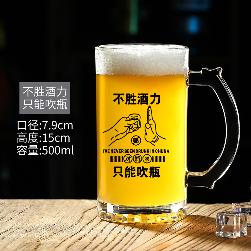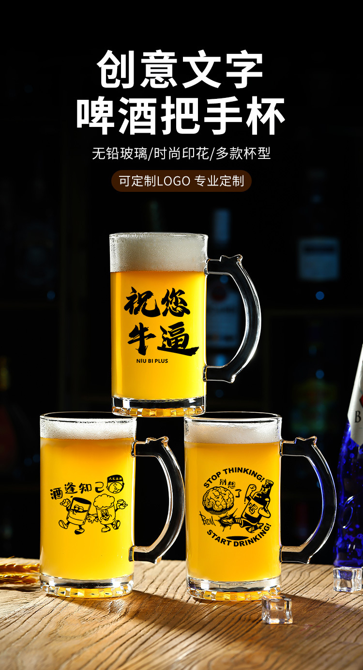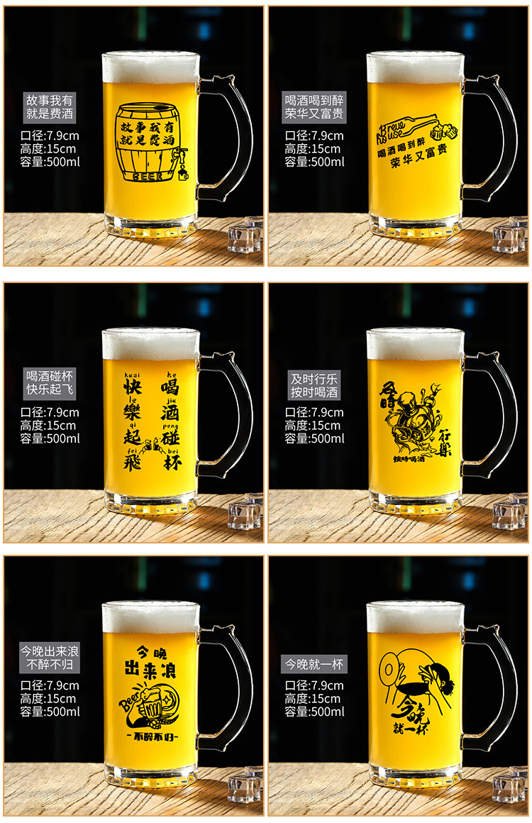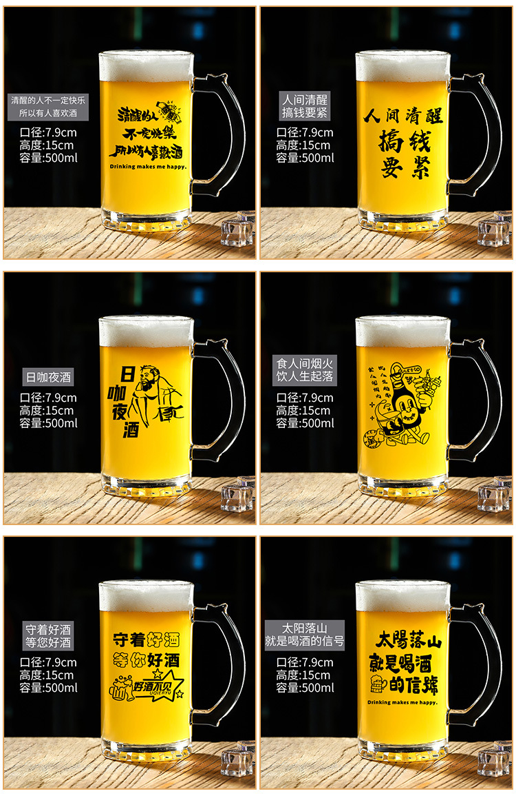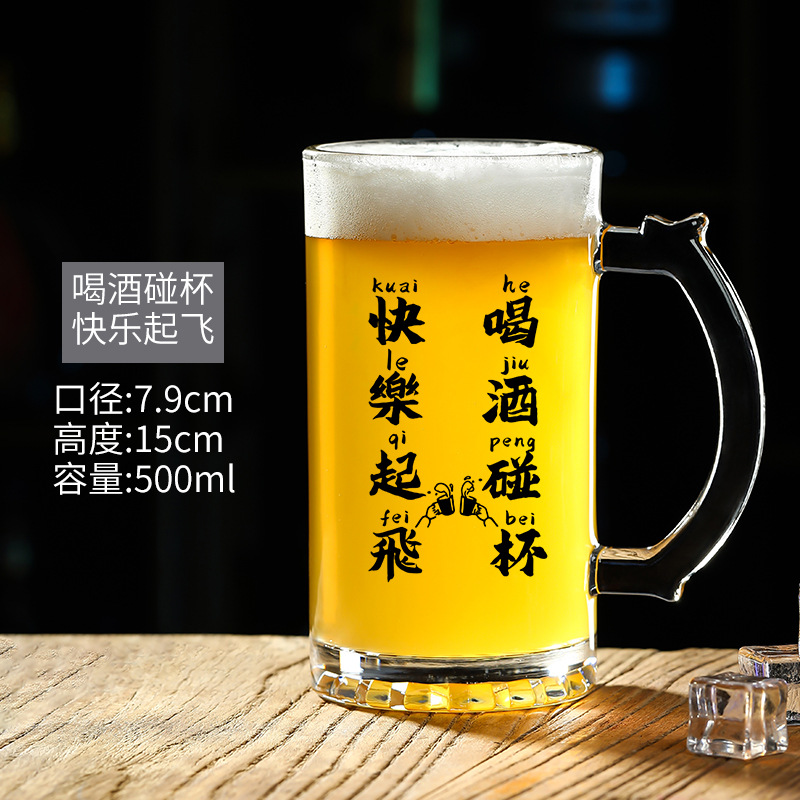 500 ml 맥주 잔 복사 초안 찻잔 그물 레드 바베큐 가게 유리 글자 대용량 와인 잔스토어 가기