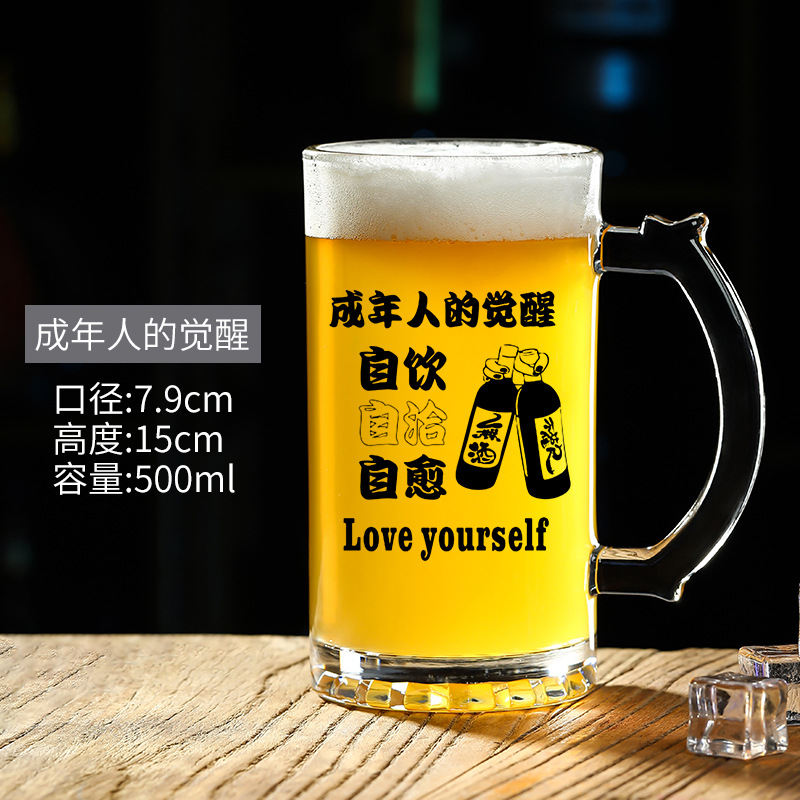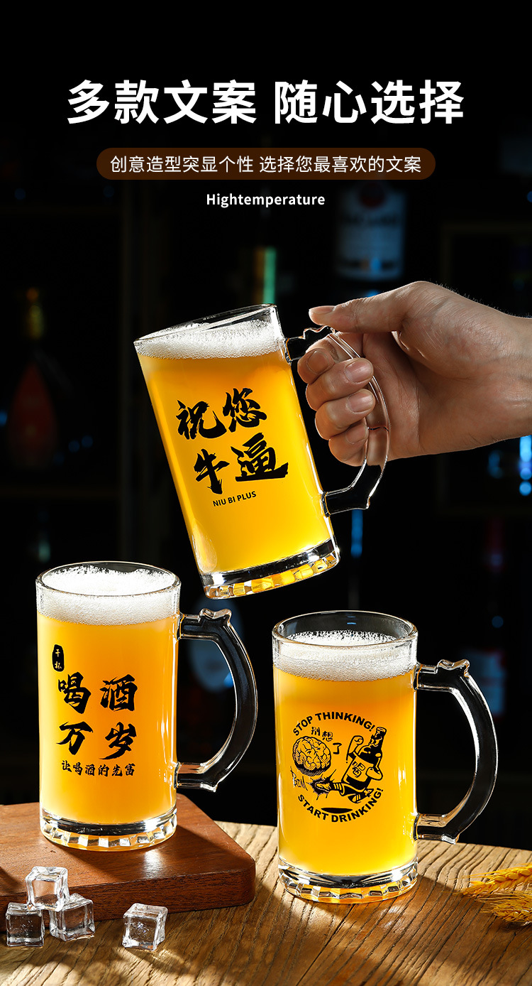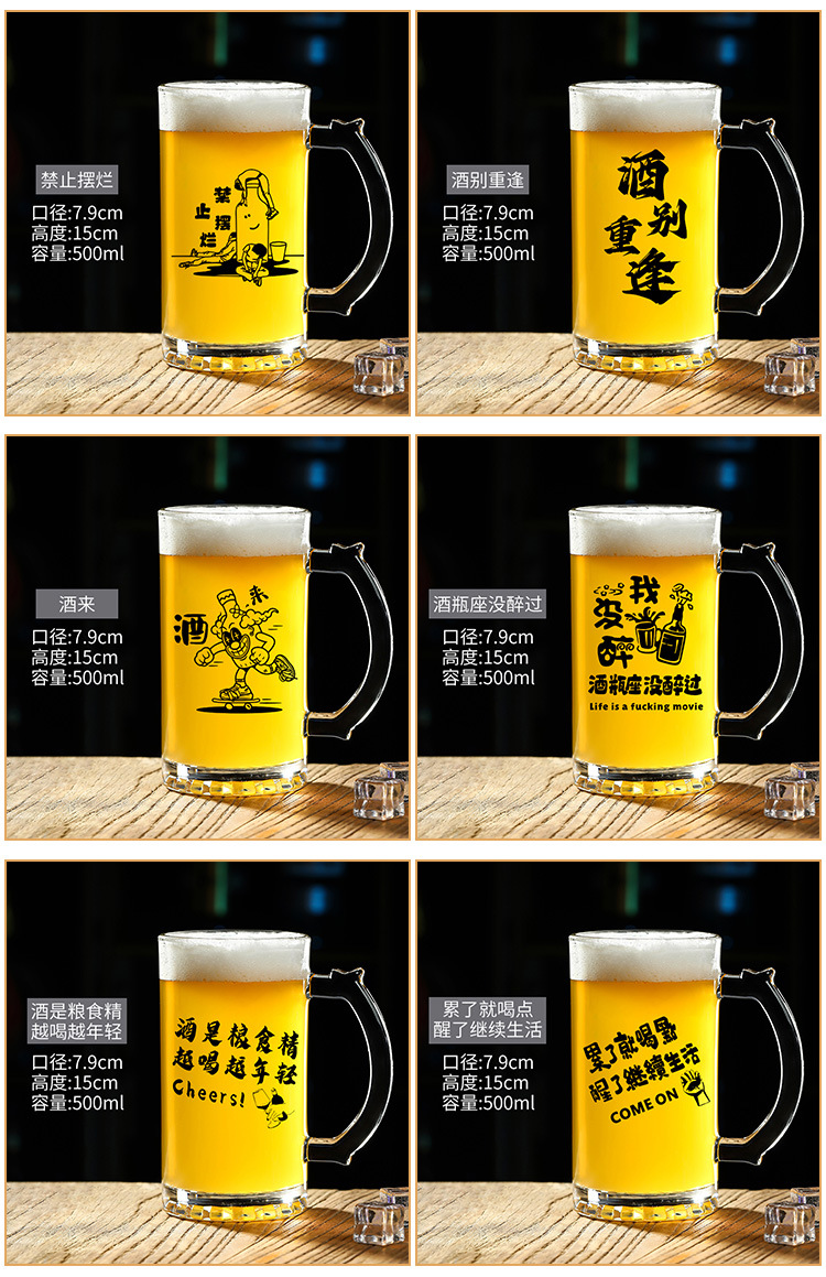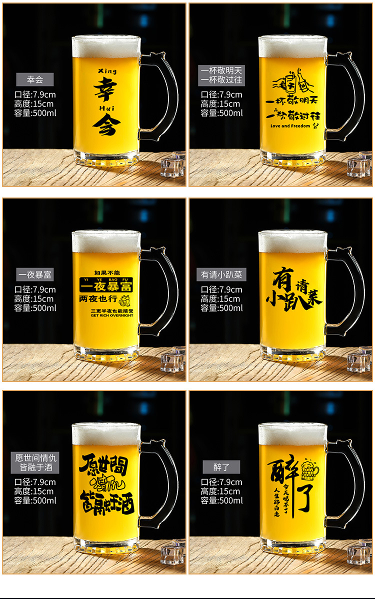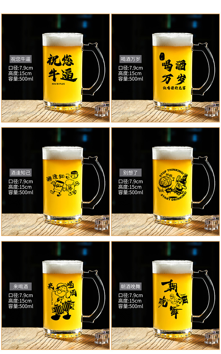 500 ml 맥주 잔 복사 초안 찻잔 그물 레드 바베큐 가게 유리 글자 대용량 와인 잔스토어 가기