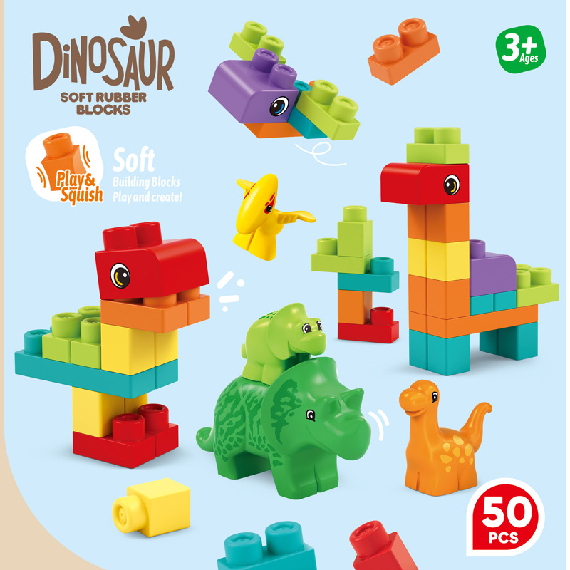 어린이 퍼즐 빌딩 블록 장난감 큰 입자 부드러운 접착제 TPR 빌딩 블록 세트 50 조각 세트스토어 가기