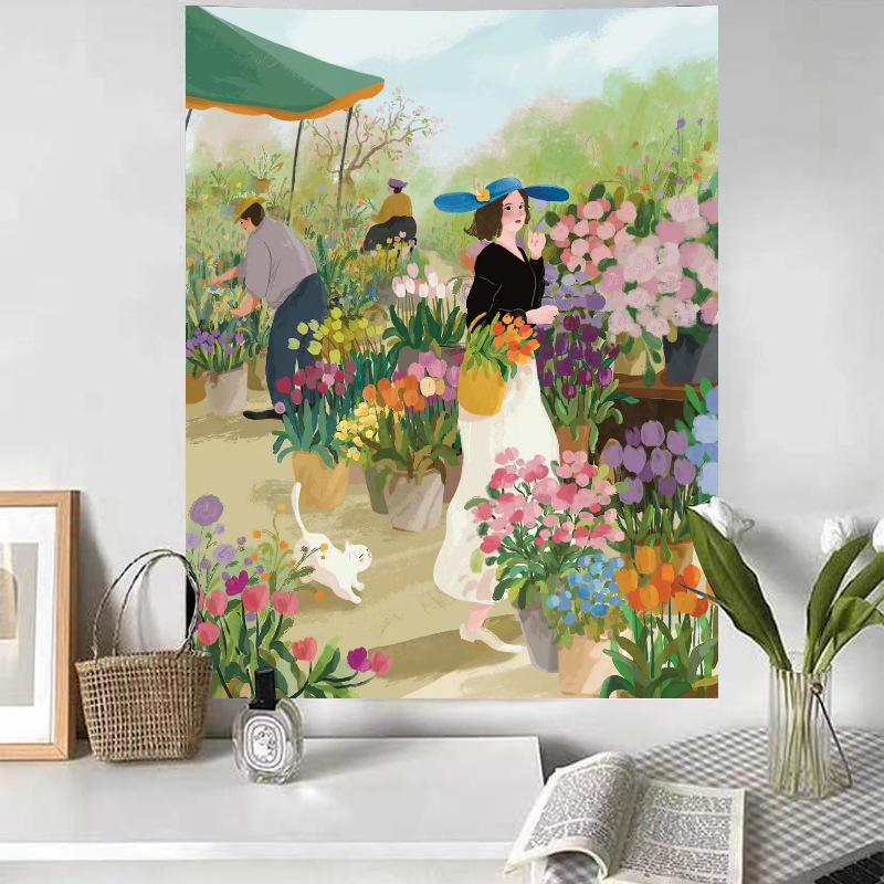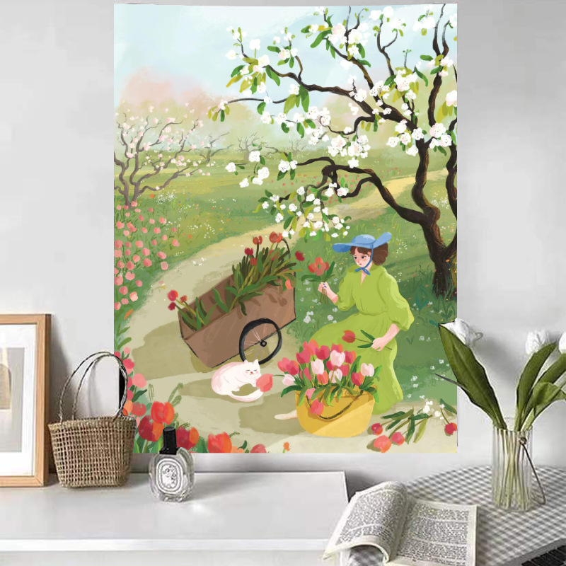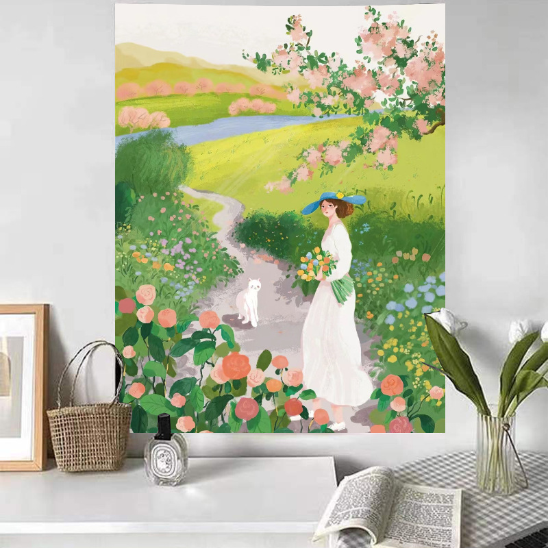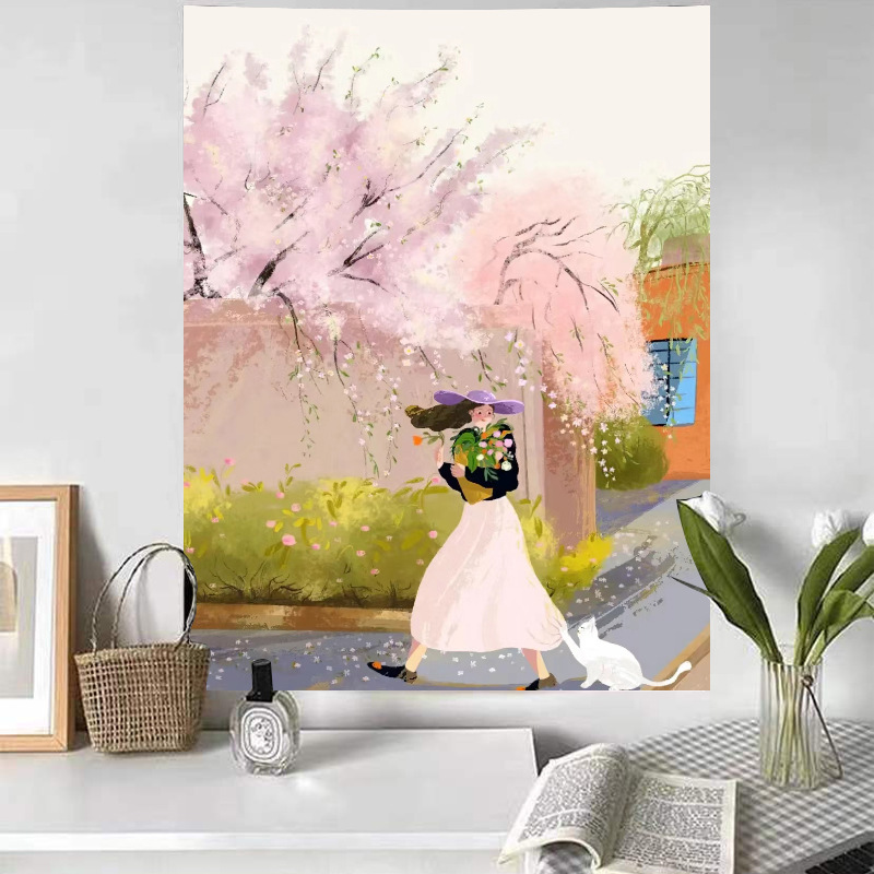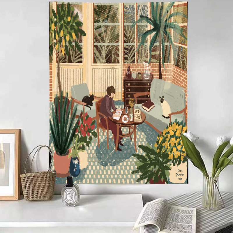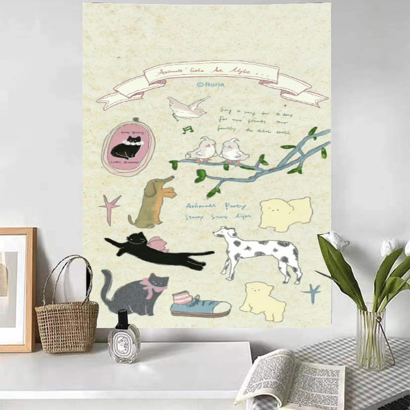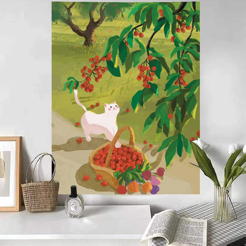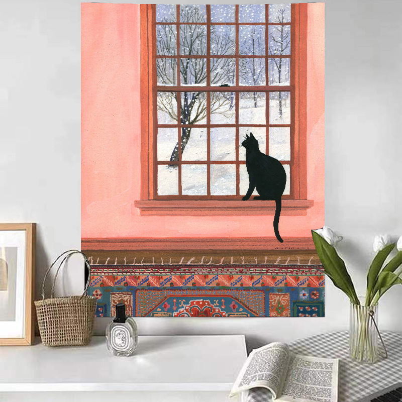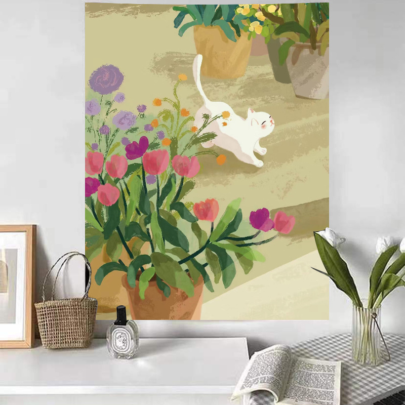 빈티지 고양이 배경 천 유화 예술 교수형 침실 벽 천 임대 주택 개조 기숙사 장식 그림 태피스트리스토어 가기