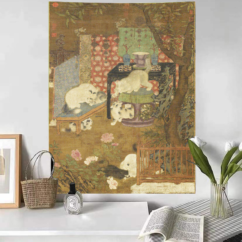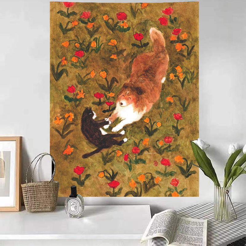 빈티지 고양이 배경 천 유화 예술 교수형 침실 벽 천 임대 주택 개조 기숙사 장식 그림 태피스트리