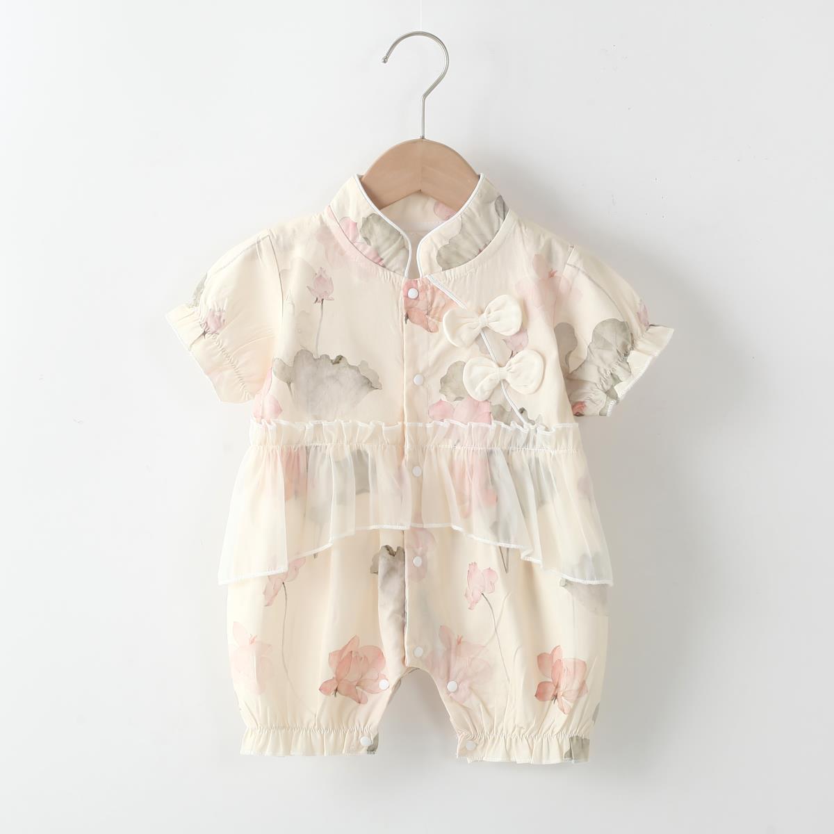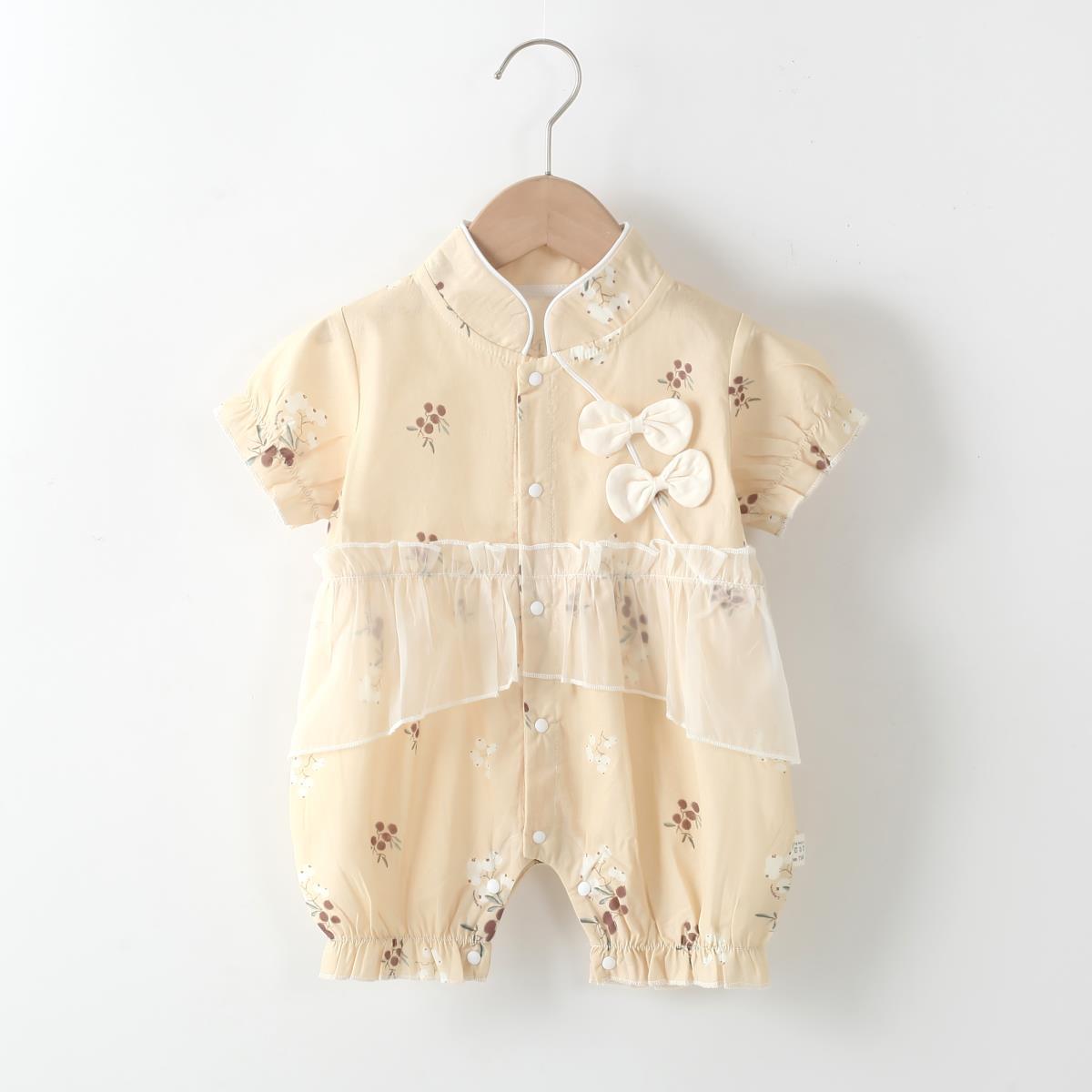 아기의 원피스 옷 여름 아기 슈퍼 귀여운 외국식 카키 옷 신생아 국가 스타일 공주 치파오 등반 옷