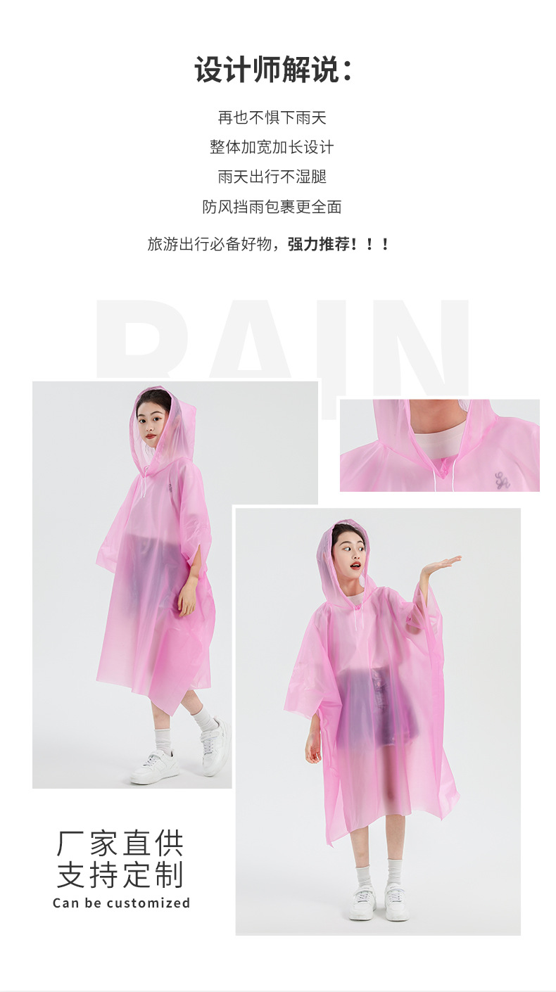 두꺼운 PEVA 판초 비옷 야외 하이킹 및 여행 대형 어린이 판초 통기성 일회용 비옷 도매스토어 가기