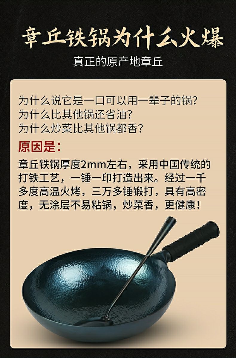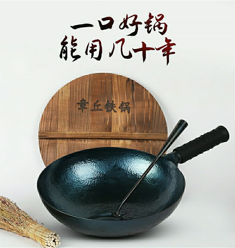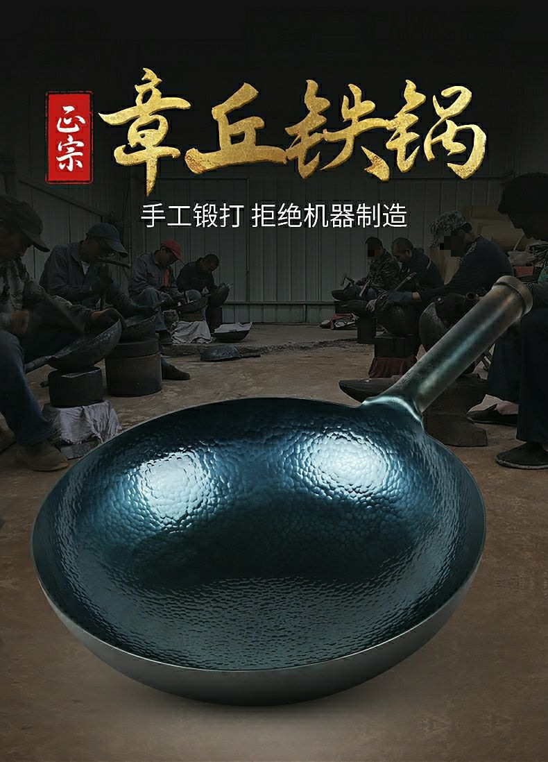 Zhangqiu Iron Pan 공식 Iron Pan 멀티 사용 구식 Iron Pan 가정용 수제 비 스틱 팬 코팅 워크