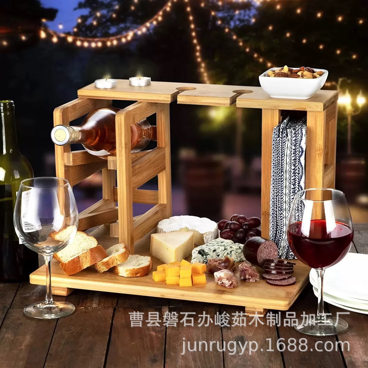 국경 간 나무 레드 와인 랙 야외 파티 레드 와인 유리 저장 랙 대나무 와인 테이블 장식 요리 식품 치즈 플레이트 와인 랙스토어 가기