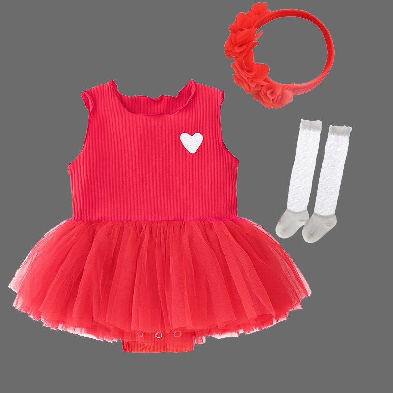 • 하치 스커트 + 화환 머리띠 + 모기 방지 양말 레드