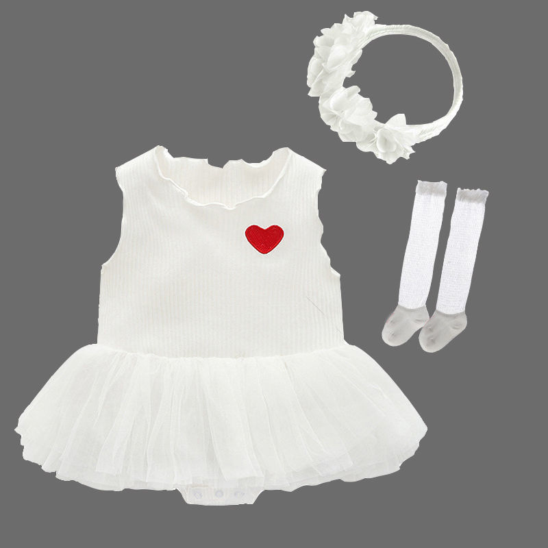 • 하치 스커트 + 화환 머리띠 + 모기 방지 양말 흰색