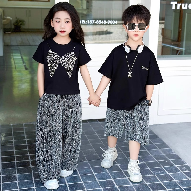 중공업 디자인 핫 드릴링 퓨어 코튼 반팔 키스 티셔츠 여름 아기 세련된 유행 가족베이스 셔츠 트렌디
