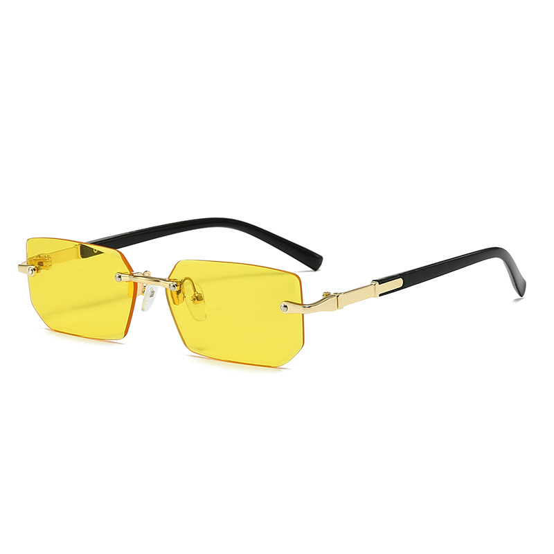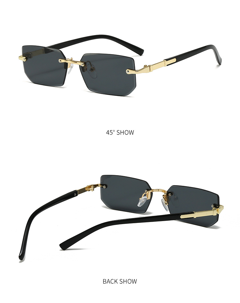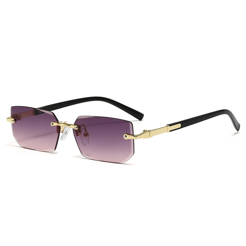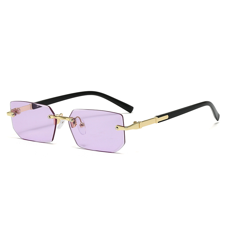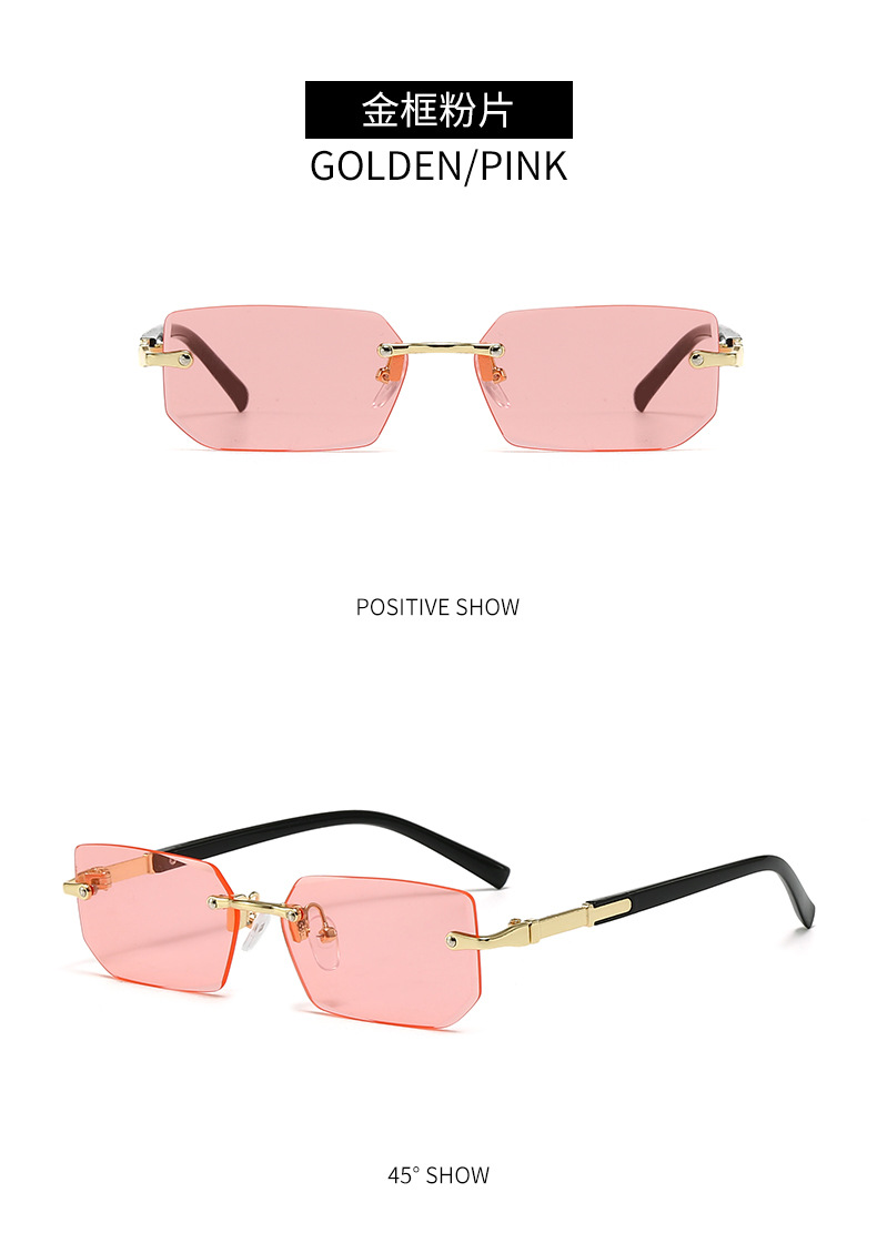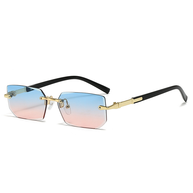 새로운 도착 프레임리스 패션 선글라스 유럽과 미국의 트렌디 컷 엣지 선글라스 맞춤형 젤리 컬러 선글라스 프레임리스 선글라스