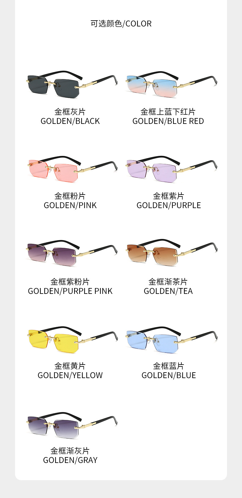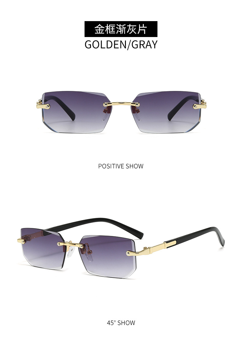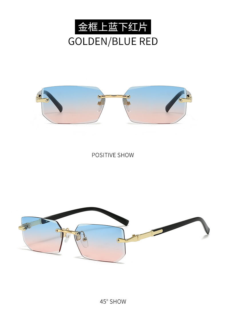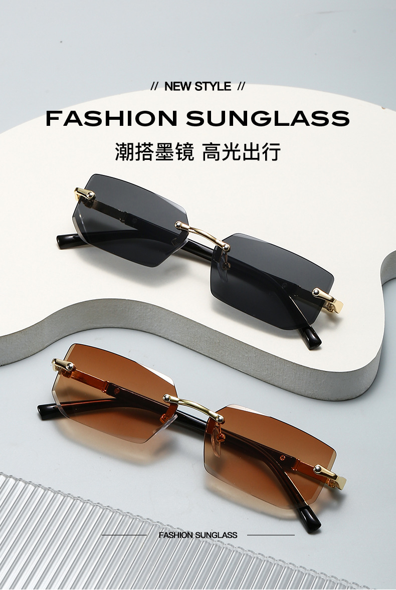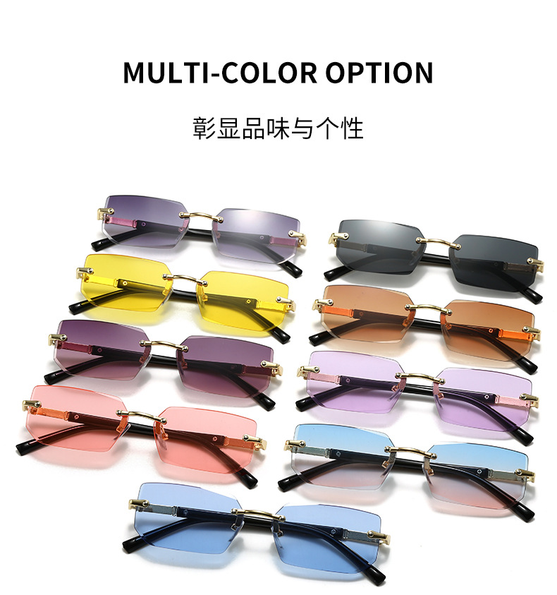 새로운 도착 프레임리스 패션 선글라스 유럽과 미국의 트렌디 컷 엣지 선글라스 맞춤형 젤리 컬러 선글라스 프레임리스 선글라스스토어 가기