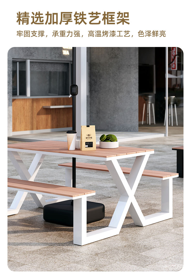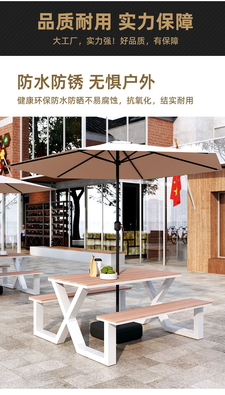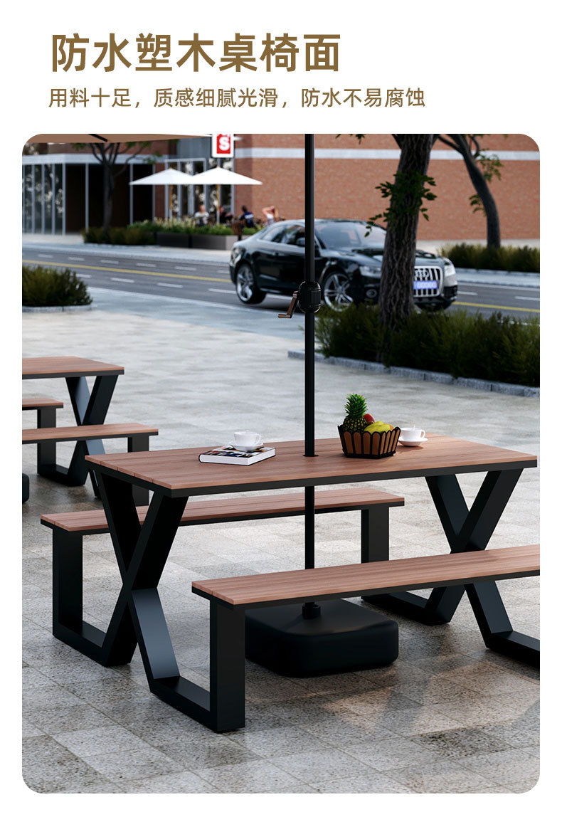 야외 플라스틱 나무 테이블과 의자 조합 그물 유명 우유 차 가게 카페 레저 테이블과 의자 야외 안뜰 정원 결합 식탁스토어 가기