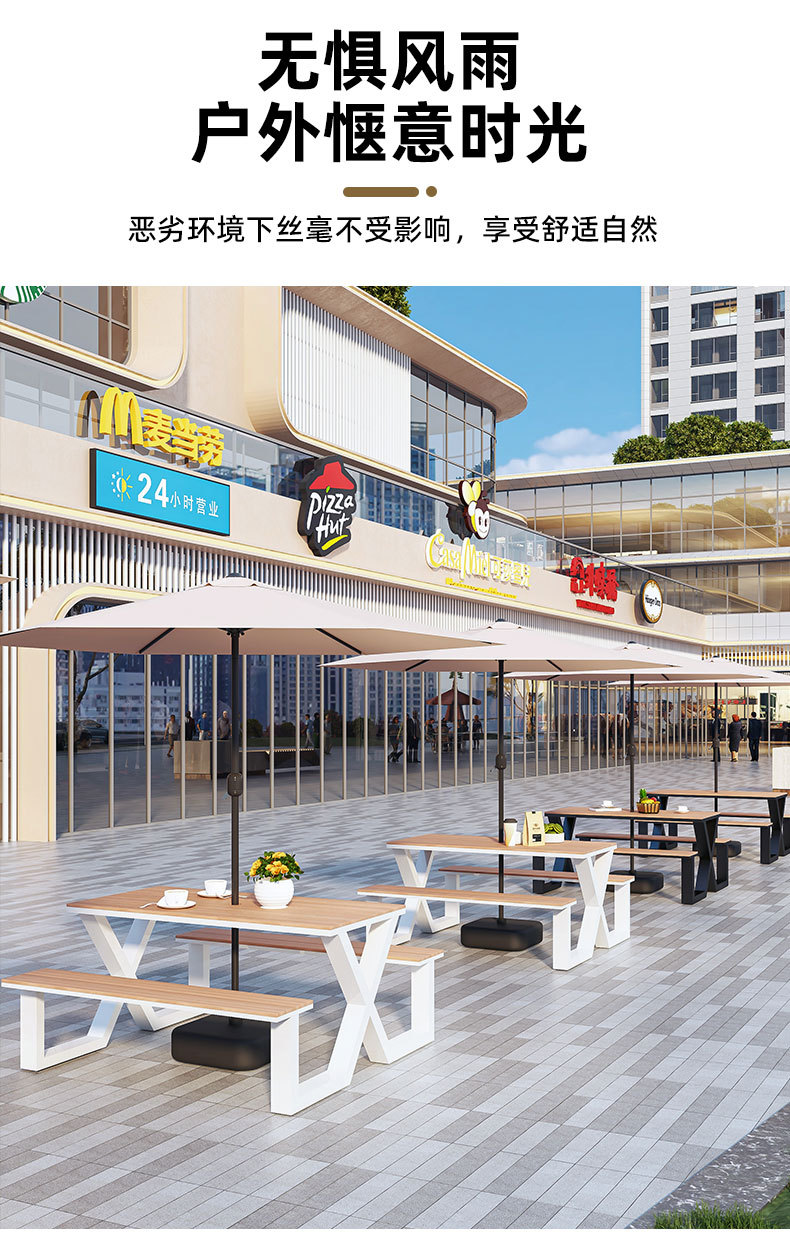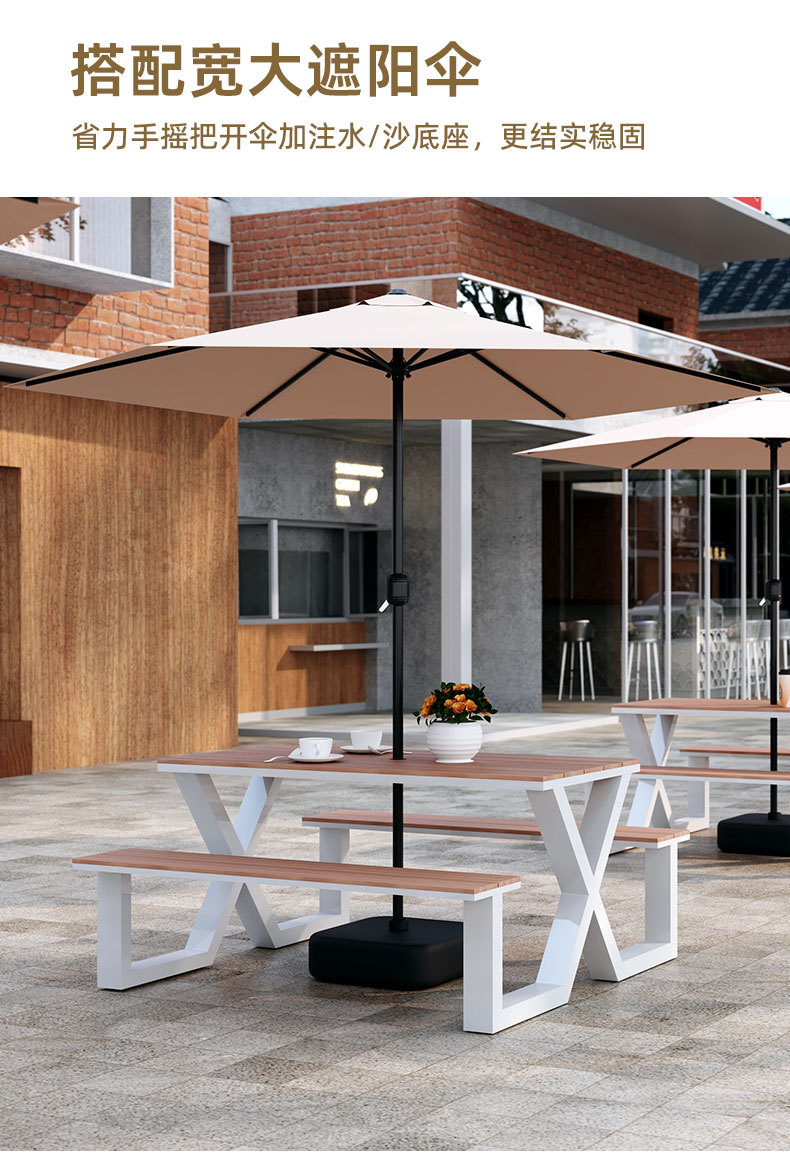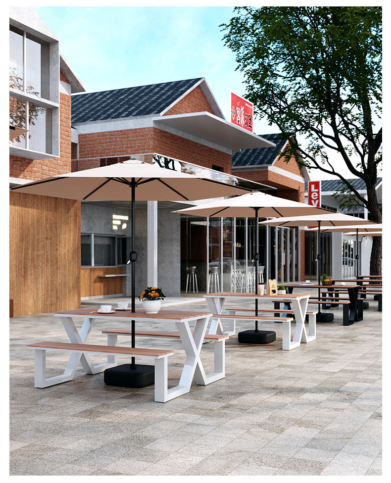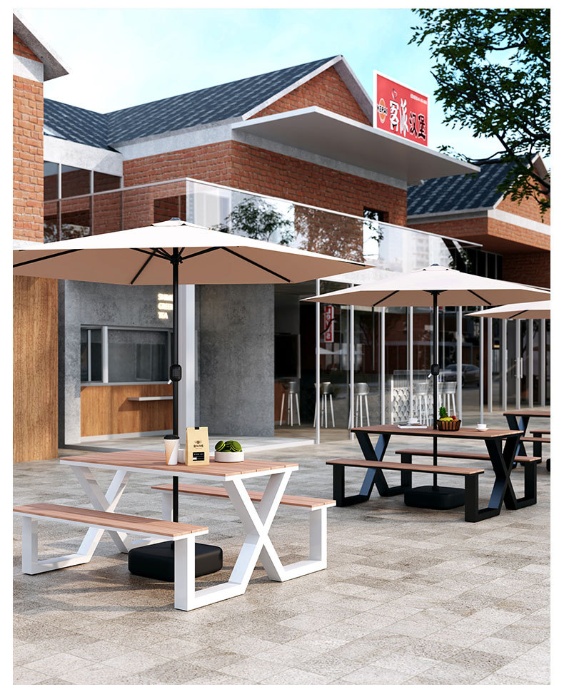 야외 플라스틱 나무 테이블과 의자 조합 그물 유명 우유 차 가게 카페 레저 테이블과 의자 야외 안뜰 정원 결합 식탁스토어 가기