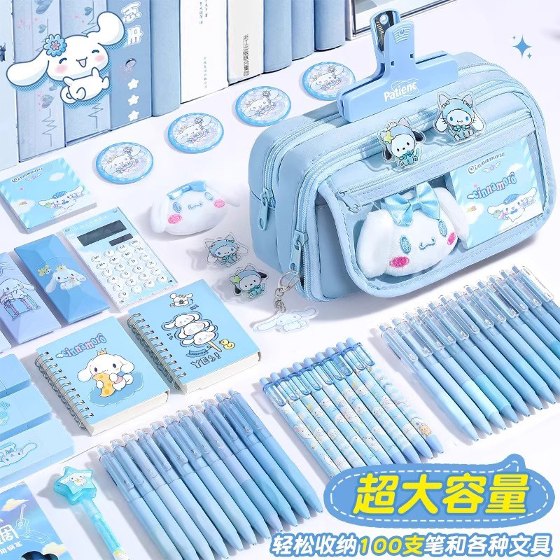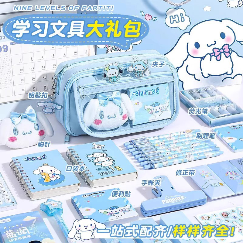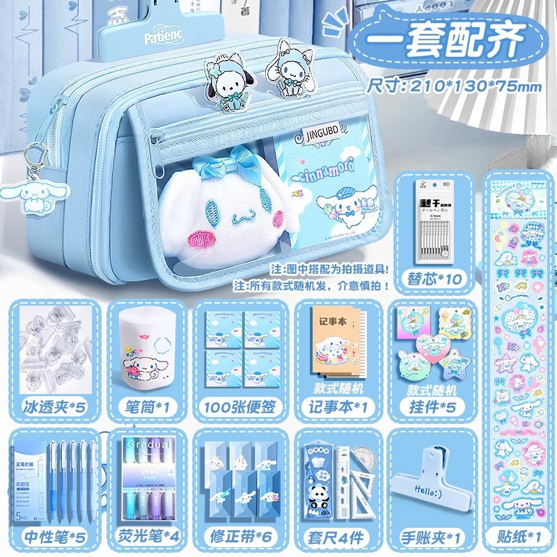 • [럭셔리 조합 학습] 블루 + 젤펜 5개 + 형광펜 4개 + 메모장 100개 + 펜던트 5개 + 수첩홀더 + 동일한 테마의 스티커