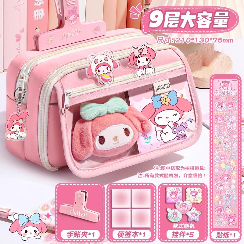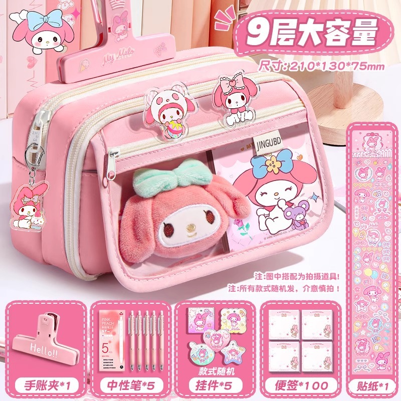 • [9단 대용량] 핑크 + 동일 테마 스티커 + 펜던트 5개 + 지갑 + 메모장