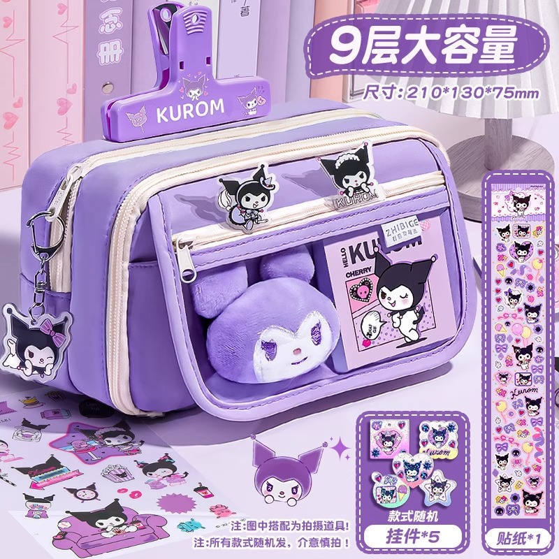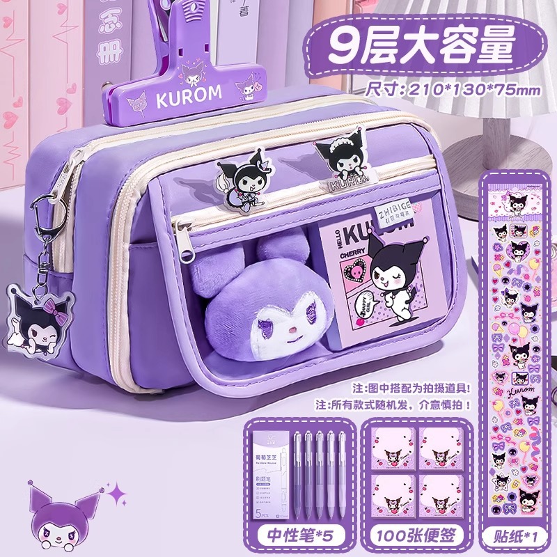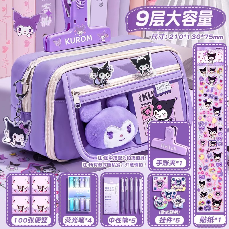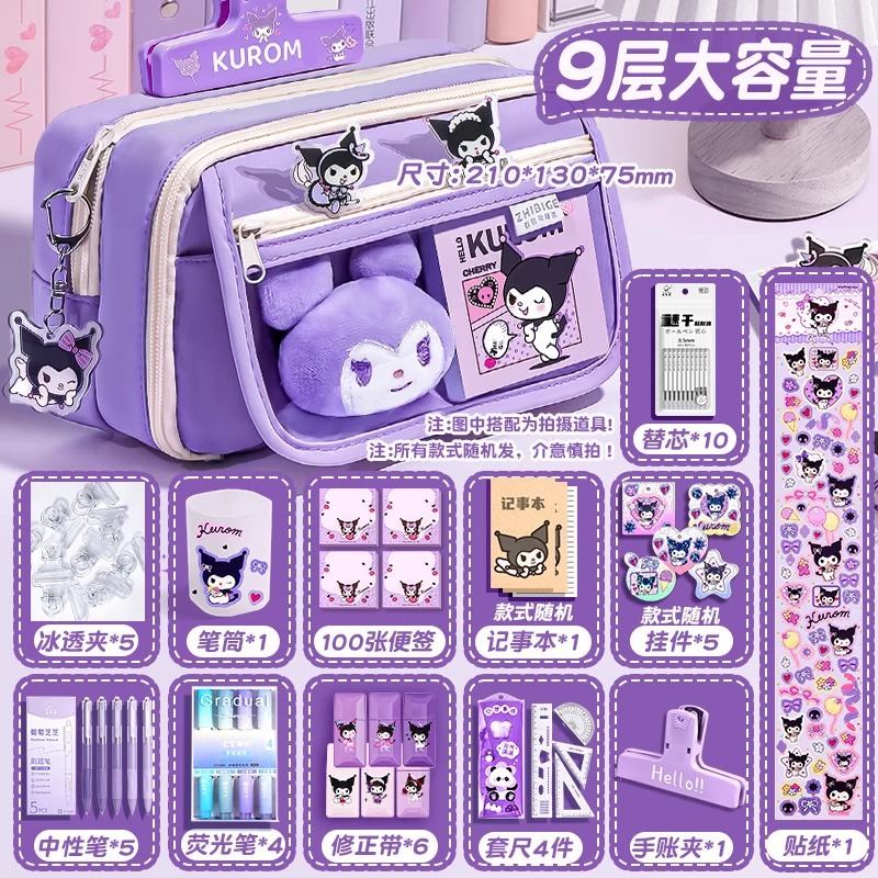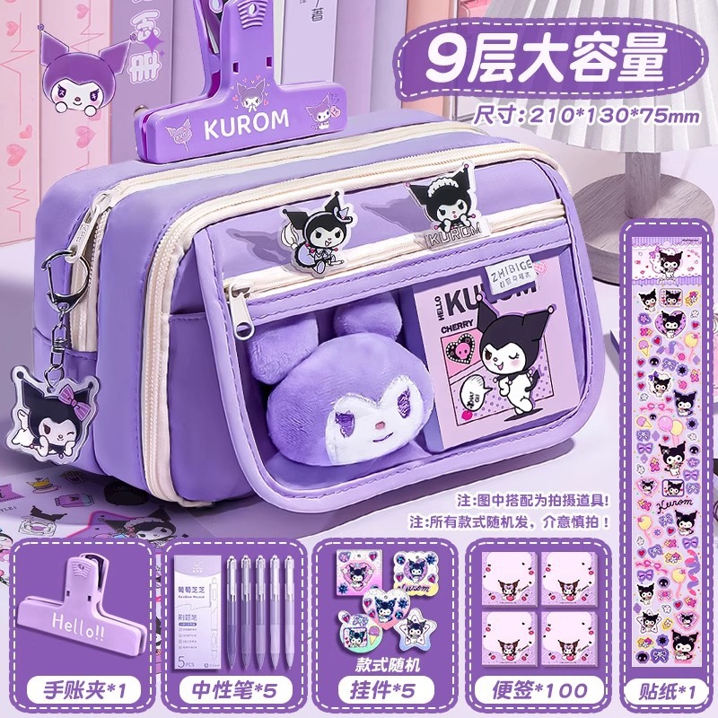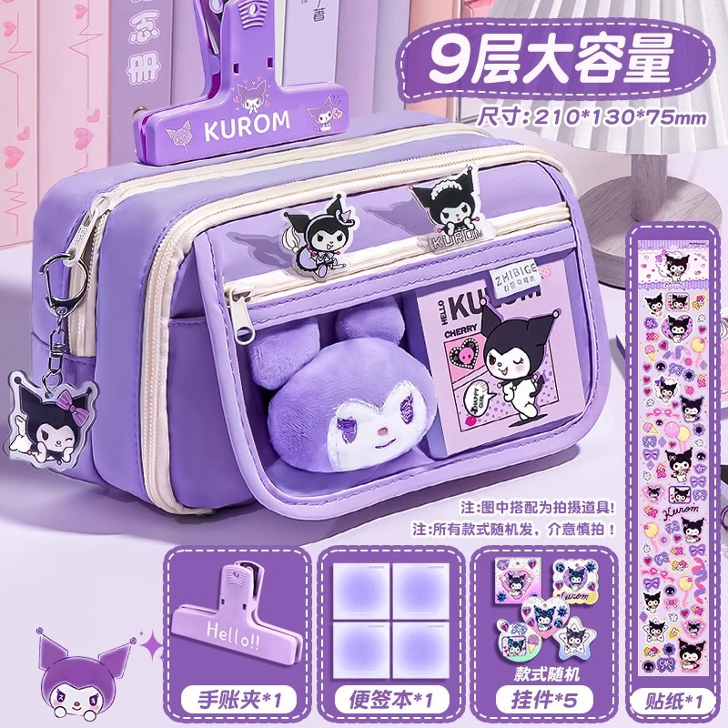 • [9단 대용량] 보라색 + 동일한 테마 스티커 + 펜던트 5개 + 지갑 + 메모장
