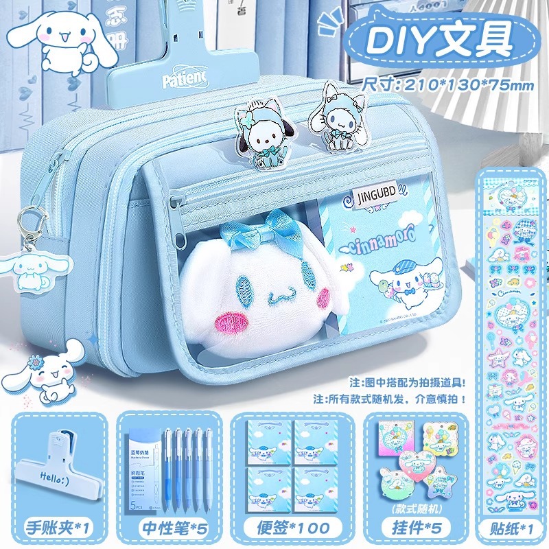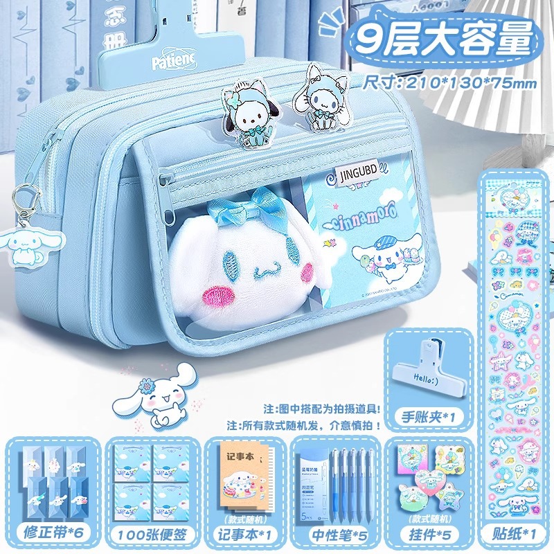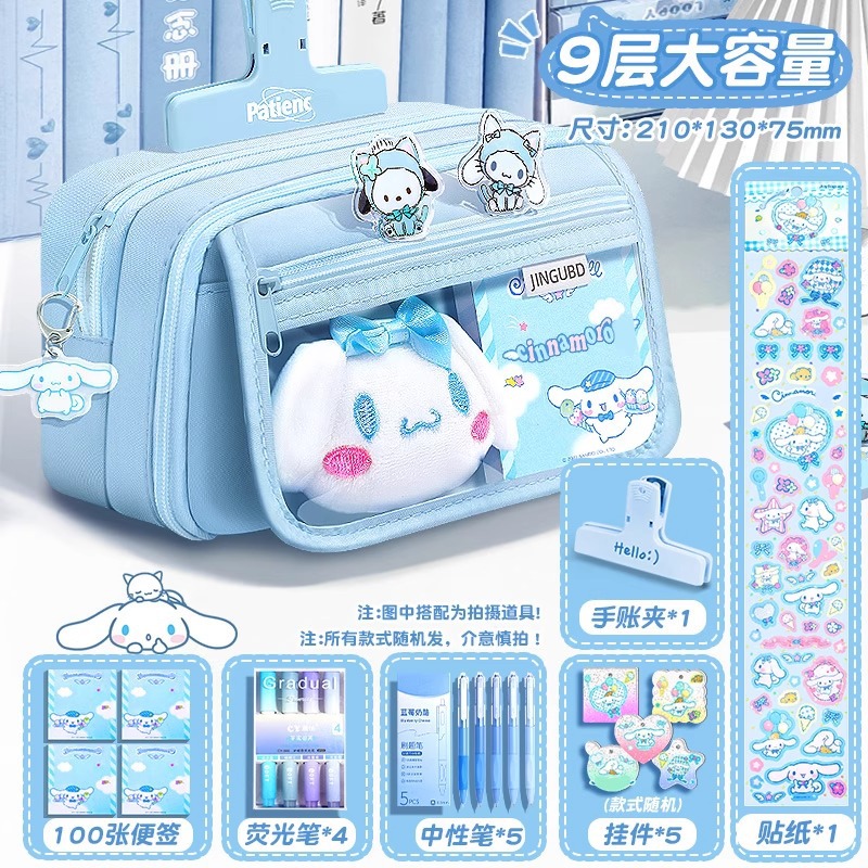 • [9단 대용량] 블루 + 동일한 테마의 스티커 + 펜던트 5개 + 지갑 + 메모장