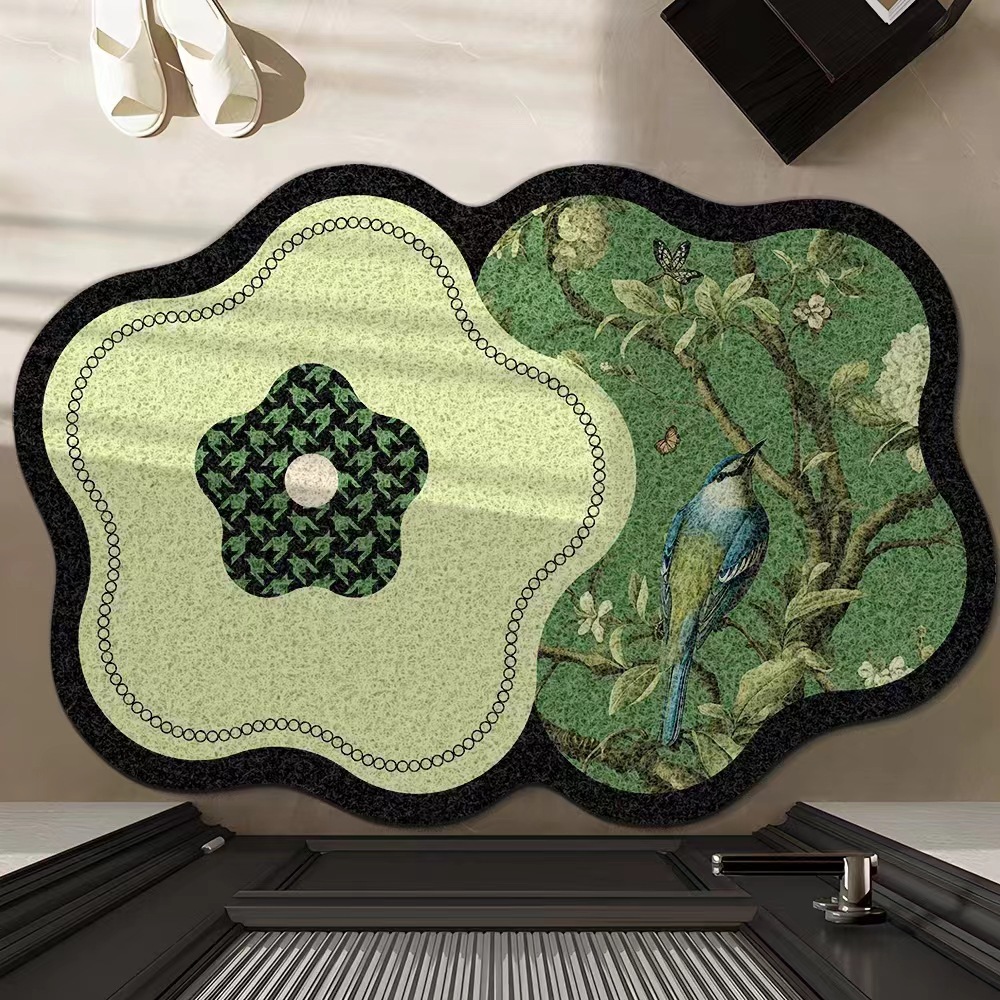 새와 꽃무늬 현관 매트, 먼지 제거 및 오염 방지, 출입문용, 미끄럼 방지 카펫, 맞춤 가능, 고급스러운 디자인