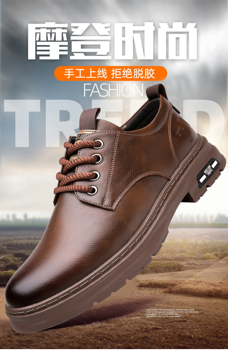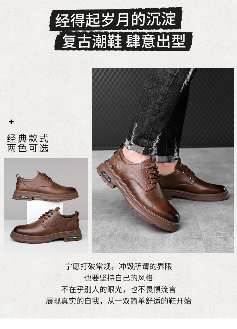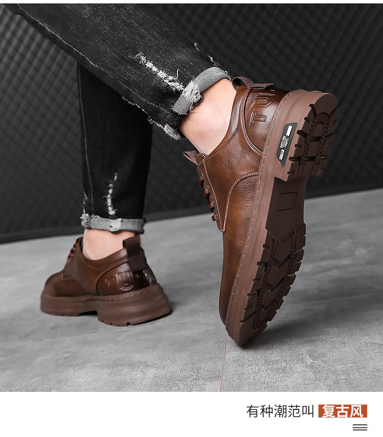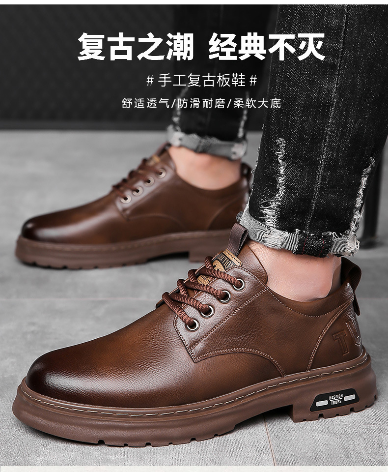2026년 봄/가을 신상 핸드메이드 남성 캐주얼 가죽신발, 남성 레트로 워크웨어 스타일 레이스업 트렌디 가죽신발스토어 가기