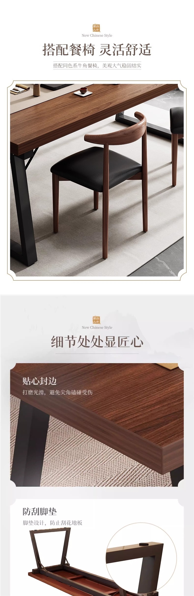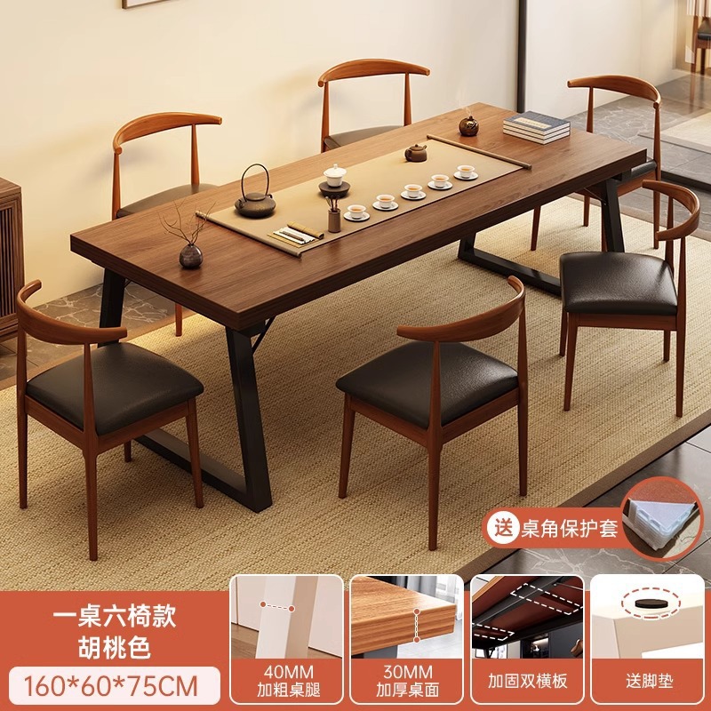 • +크로스보더+테이블 1개와 의자 6개, 160*60cm, 클래식 월넛 컬러 테이블