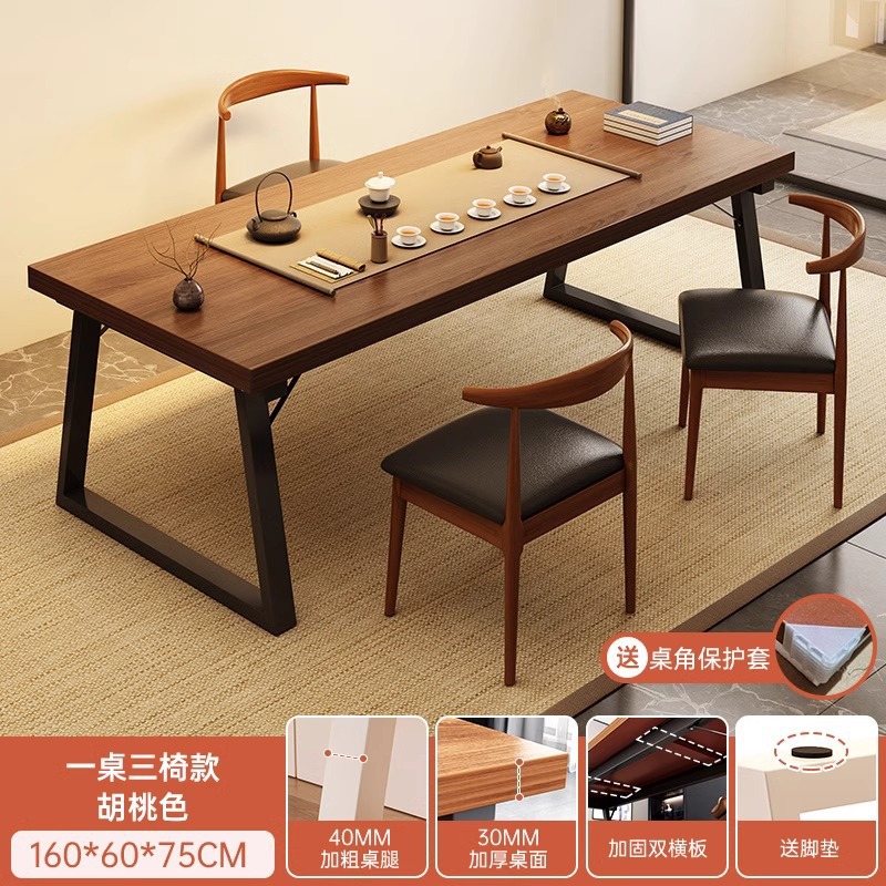 • +크로스보더+테이블 1개와 의자 3개, 180*70cm, 클래식 월넛 컬러 테이블