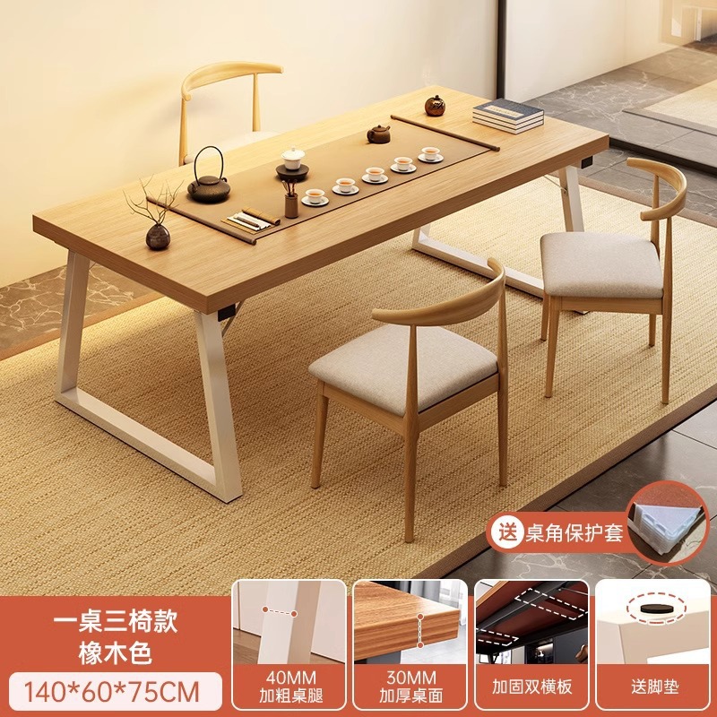 • +크로스보더+테이블 1개와 의자 3개, 140*60cm, 전통 오크색 테이블