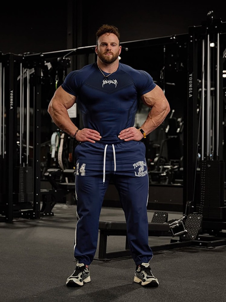 국경 간 대외 무역 유럽과 미국의 패션 브랜드 YOUNGLA 스포츠 피트니스 티셔츠 타이츠 높은 탄성 훈련 의류 짧은 소매 피트니스 의류