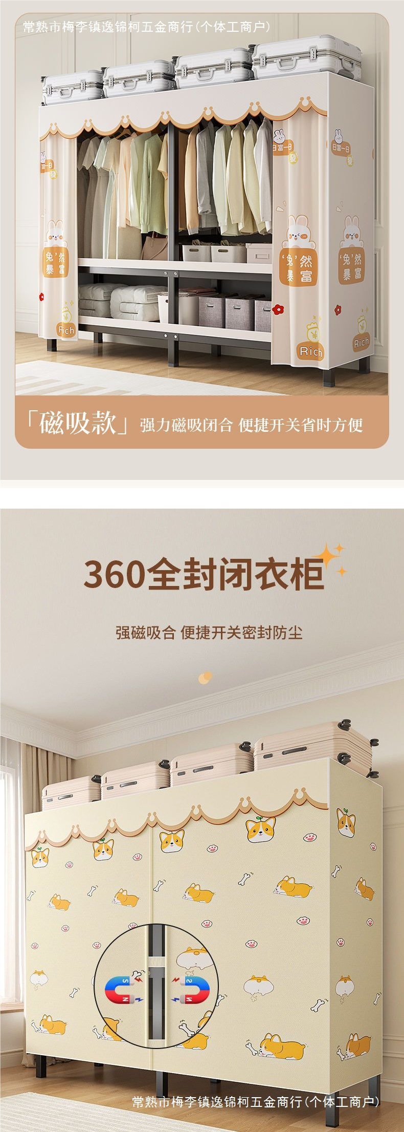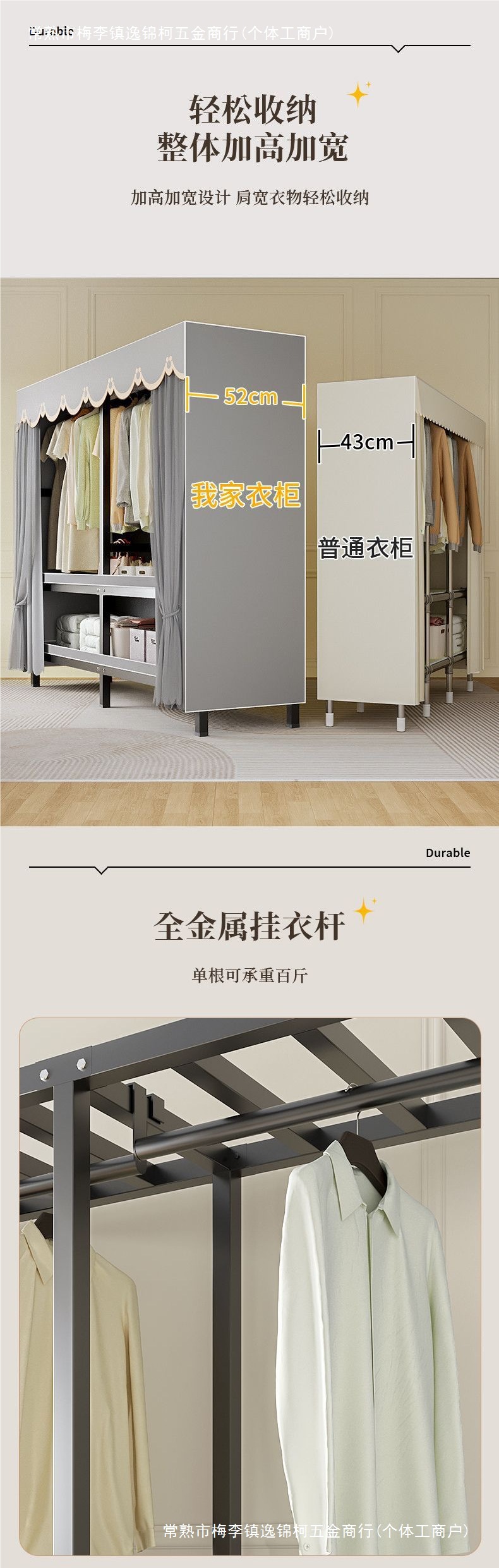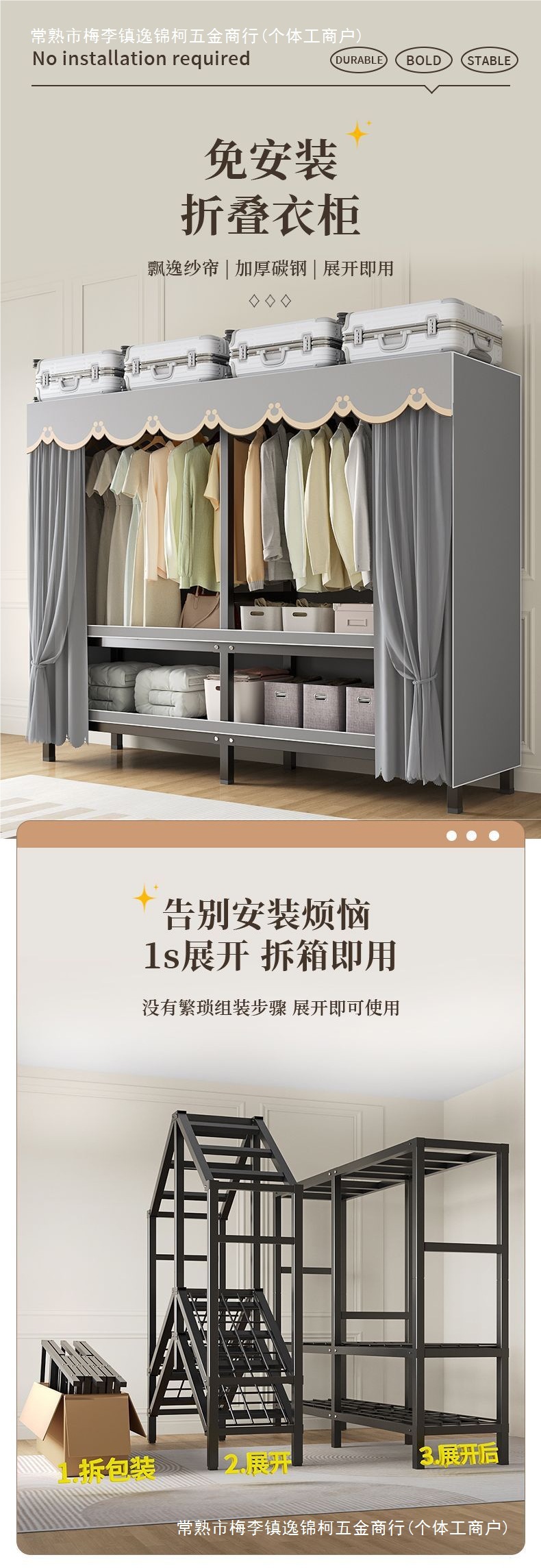 간단한 옷장 홈 침실 보관 방진 대담한 강철 파이프 강력한 부하 접이식 설치-무료 새 옷 캐비닛스토어 가기