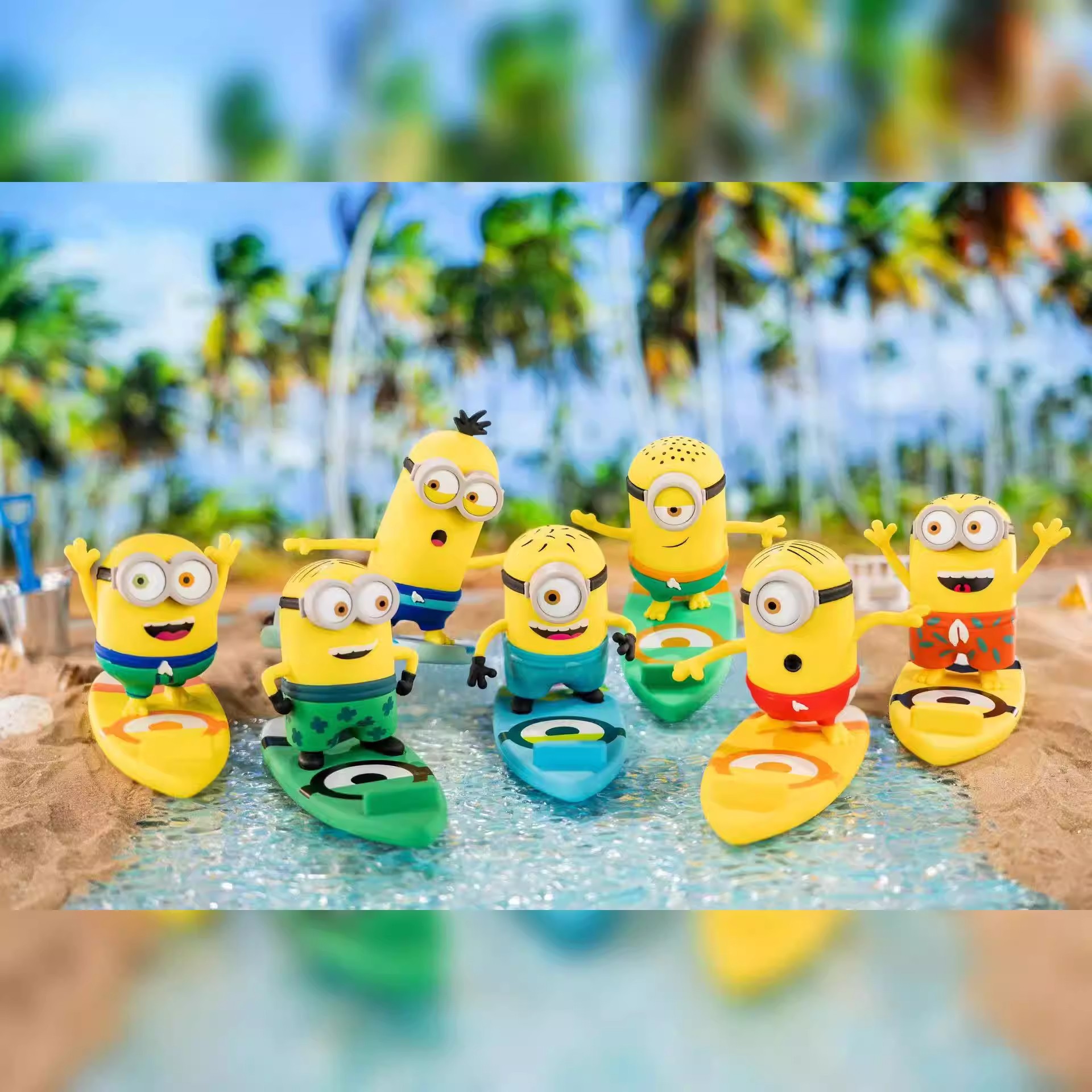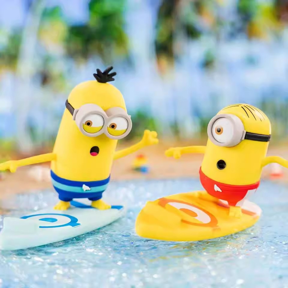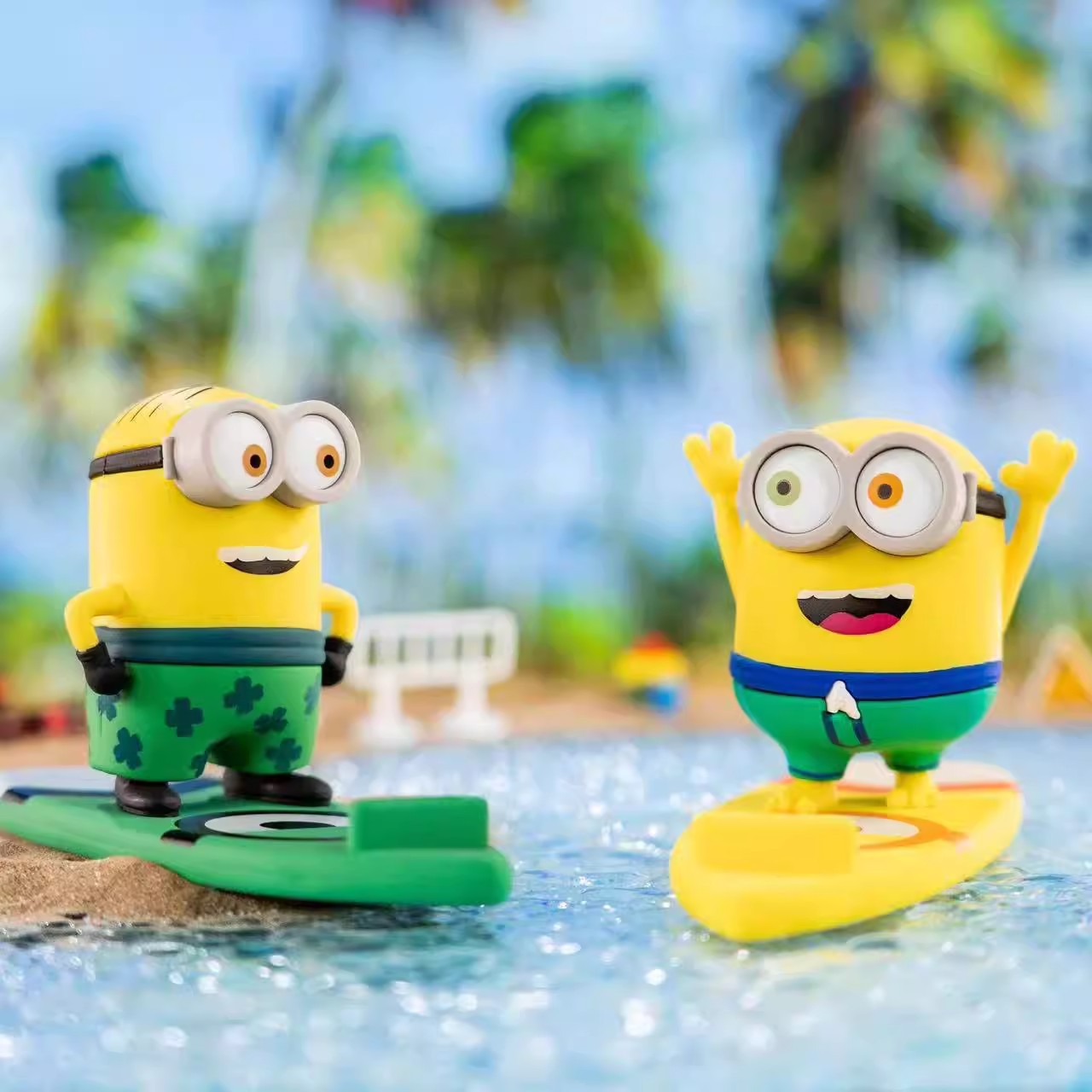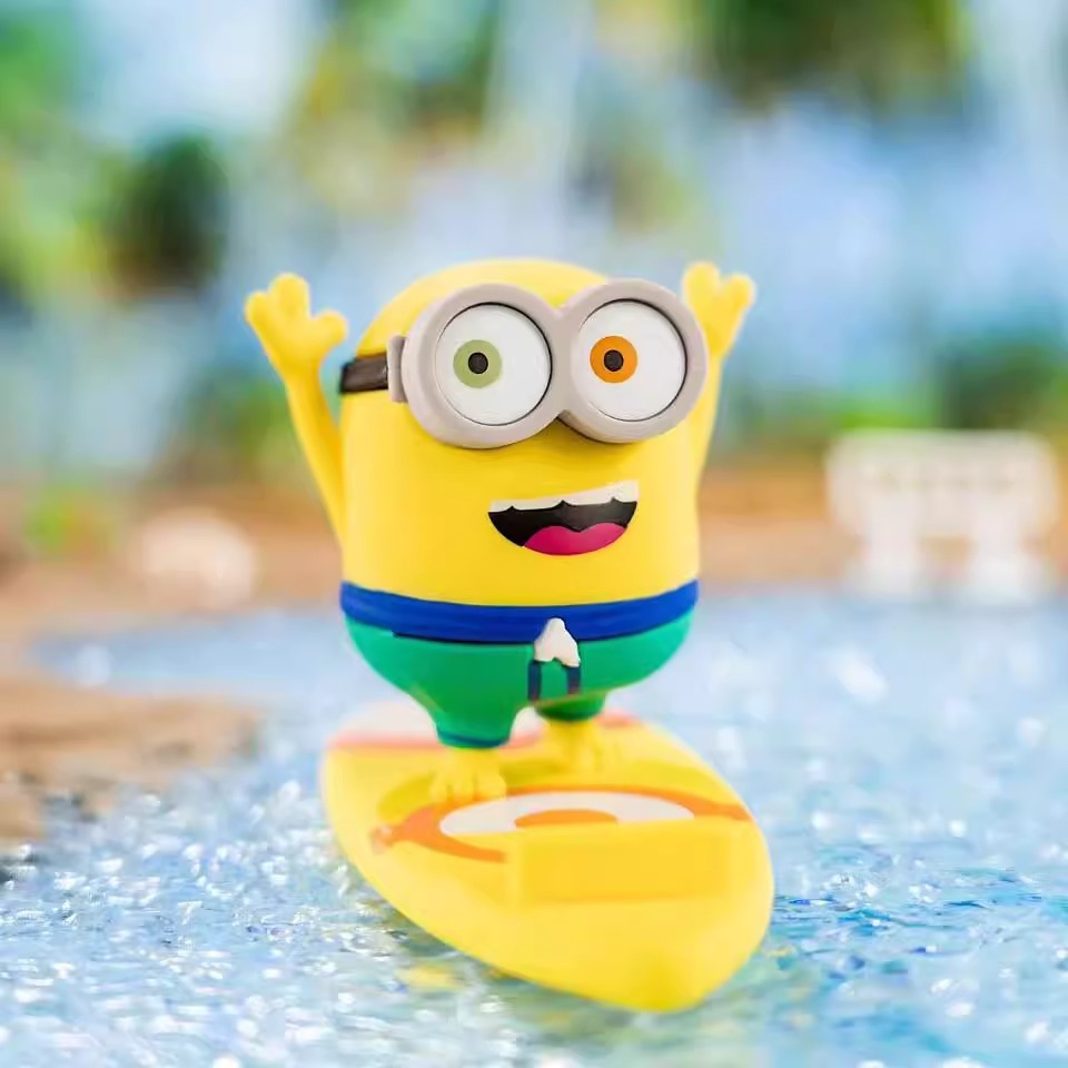 미니언 해피 서핑 시리즈 휴대 전화 브래킷 블라인드 박스 귀여운 애니메이션 주변 수제 데스크탑 장식품 인형