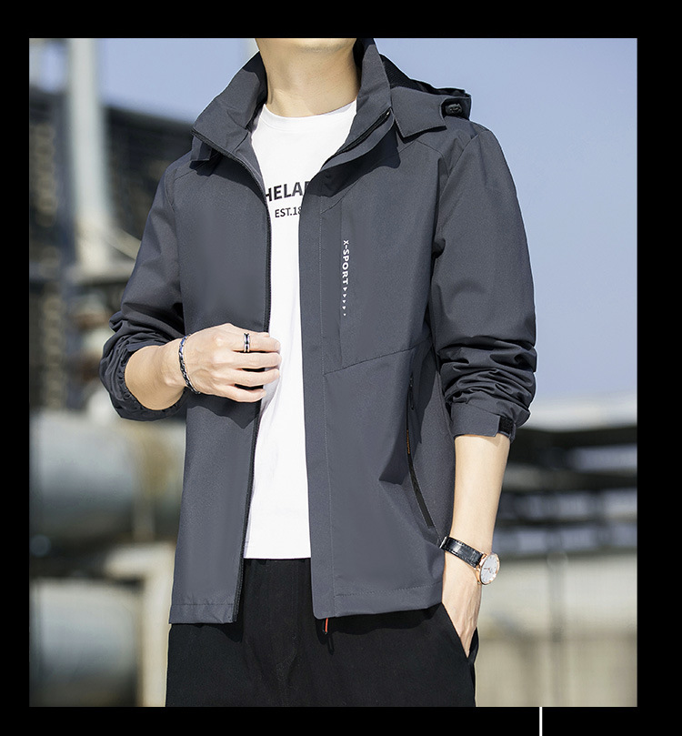 봄과 가을 재킷 남자의 플러스 사이즈 분리 가능한 모자 야외 등산 캐주얼 방수 방풍 재킷스토어 가기