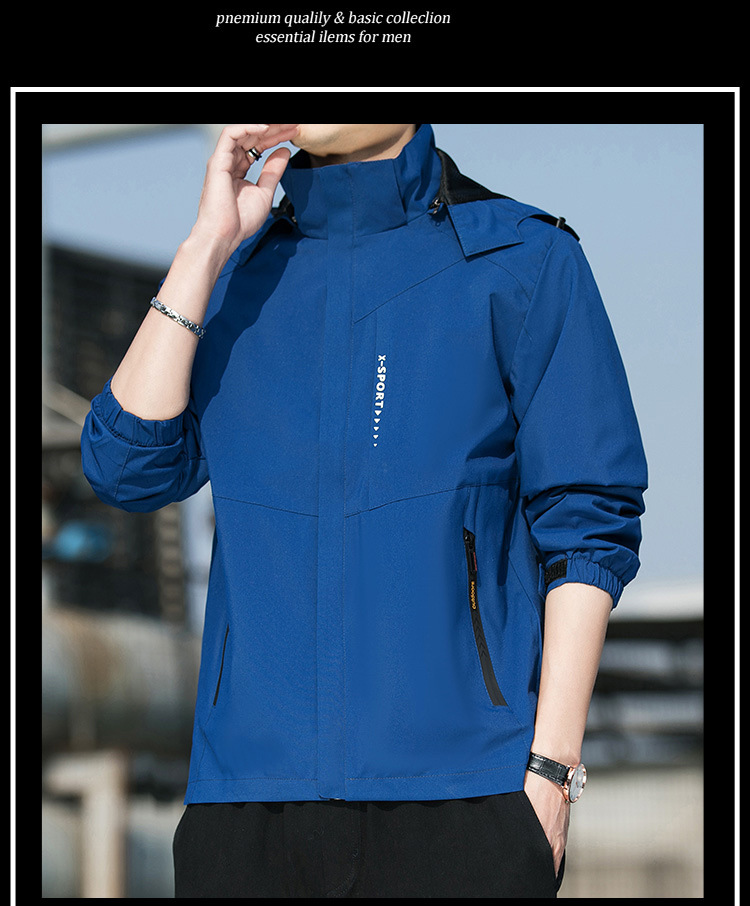 봄과 가을 재킷 남자의 플러스 사이즈 분리 가능한 모자 야외 등산 캐주얼 방수 방풍 재킷