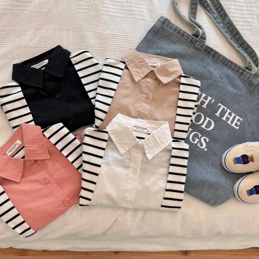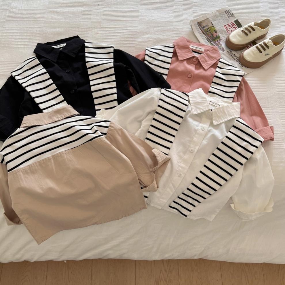 [2025 새 어린이 봄 의류] 아동복 어린이 셔츠 가을 새 가짜 투피스 단색 목도리 소년 소녀스토어 가기