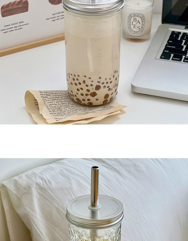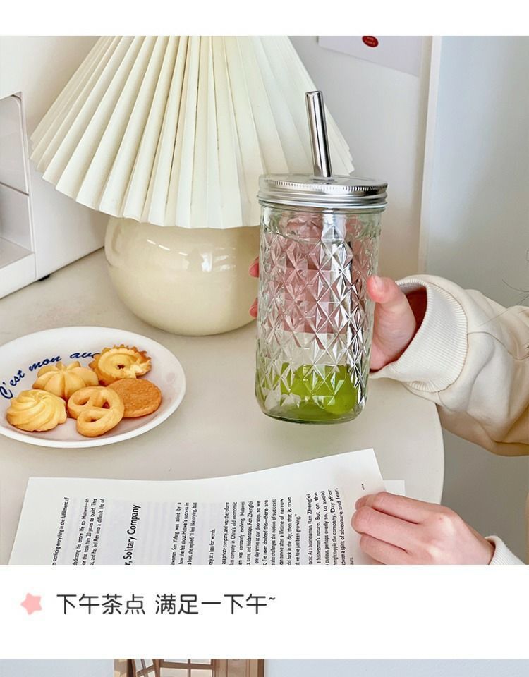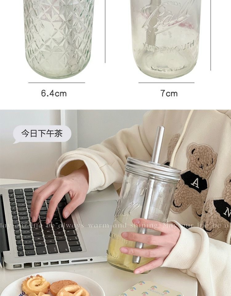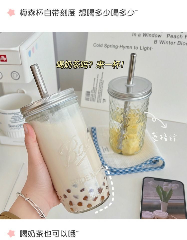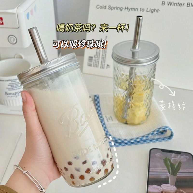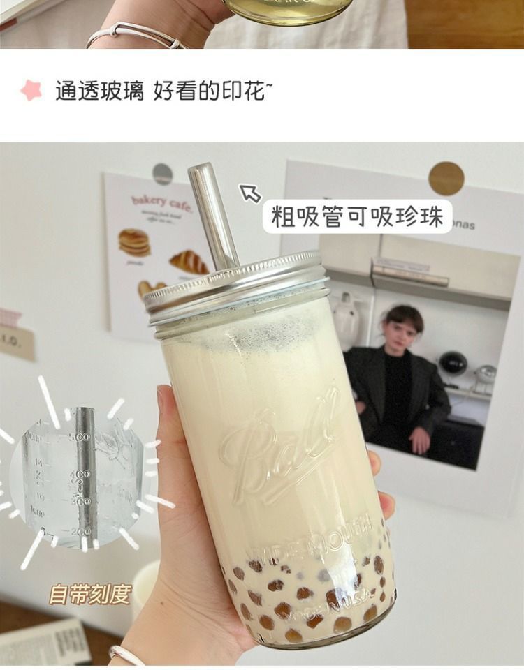 진주 우유 차 컵 스타일 빈티지 메이슨 컵 여름 물 컵 학생 핸디 컵 과일 주스 우유 커피 컵 여자스토어 가기