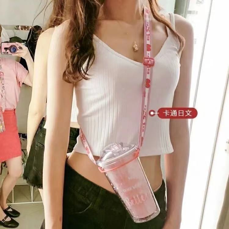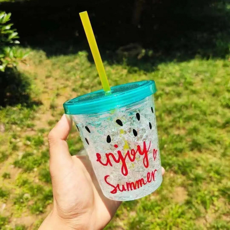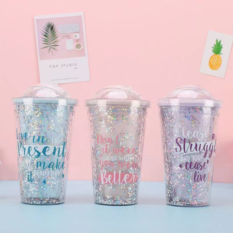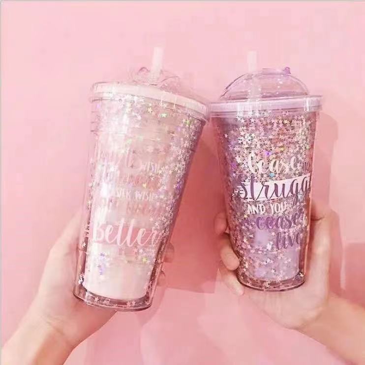 남학생과 여학생을 위한 창의적인 인터넷 연예인 플라스틱 대용량 물컵, 빨대가 달린 한국식 귀여운 Douyin 트렌디 아이스 컵