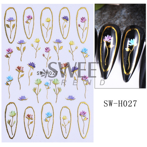 국경 간 새로운 꽃 네일 아트 스티커 Ins 스타일 봄 브론징 에지 벚꽃 장미 접착제 네일 데칼