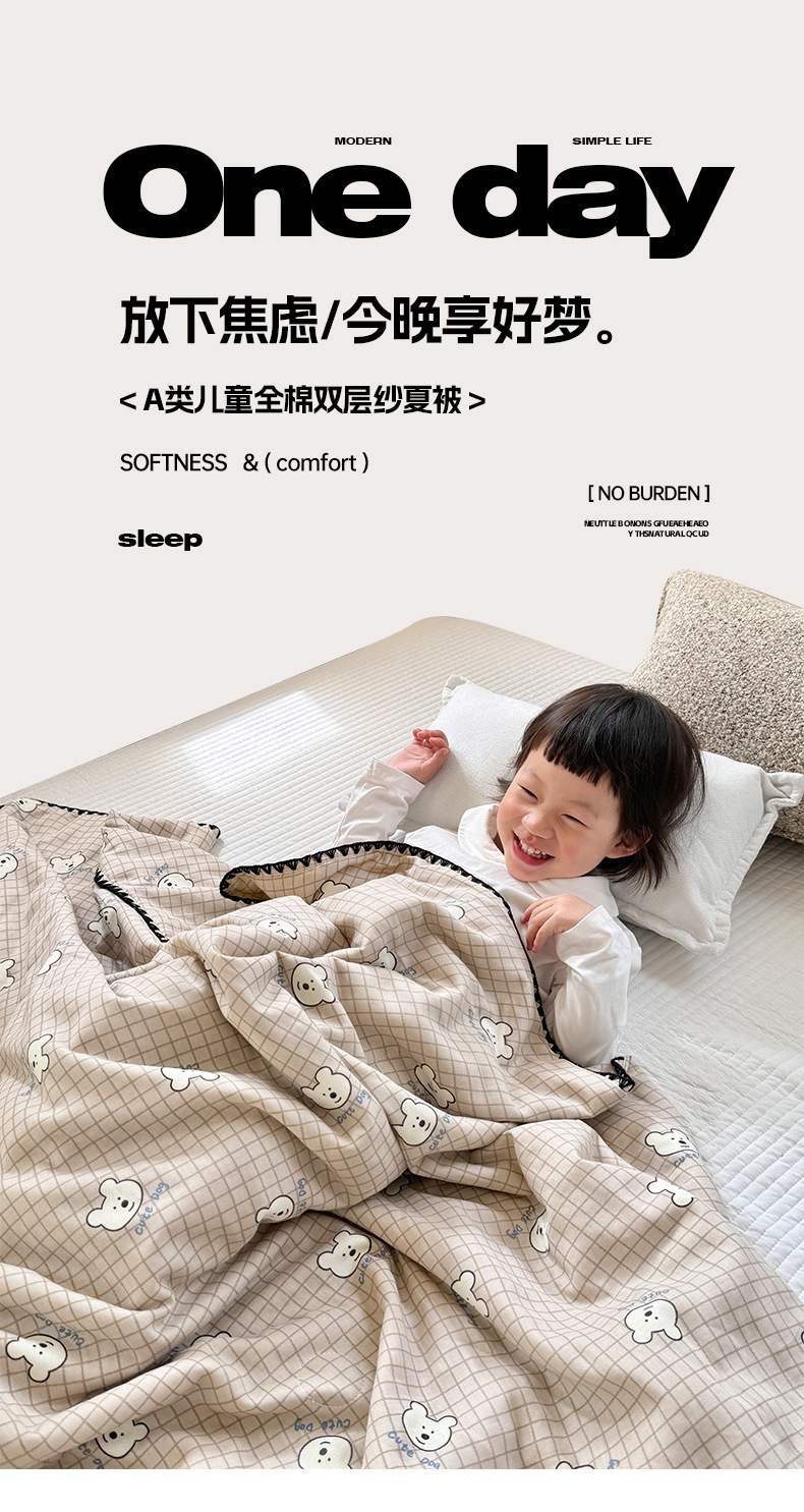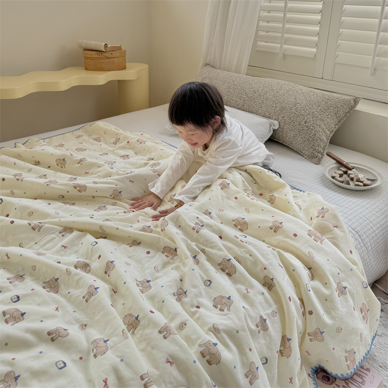 2025 새로운 클래스 A 어린이 면 더블 레이어 원사 여름 퀼트 여름 쿨 퀼트 에어컨 퀼트 귀여운 만화 커버 담요 레저 담요