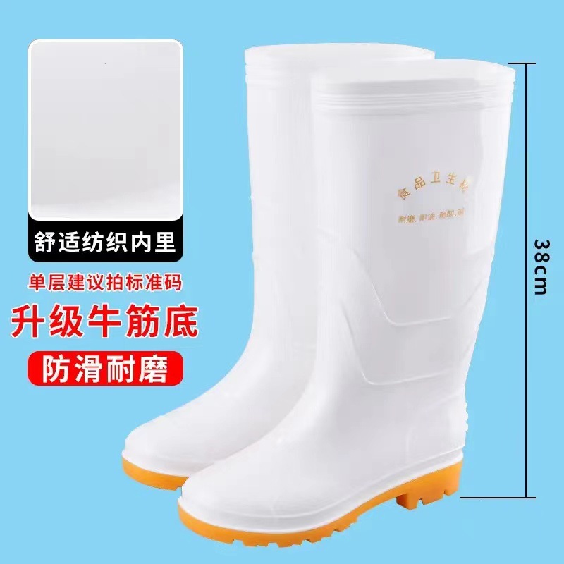 화이트 남성용 높은 비 장화 식품 공장 작업 장화 비 슬립 식품 위생 부츠 오일 저항성 산 및 알칼리 저항성 요리사 물 신발스토어 가기