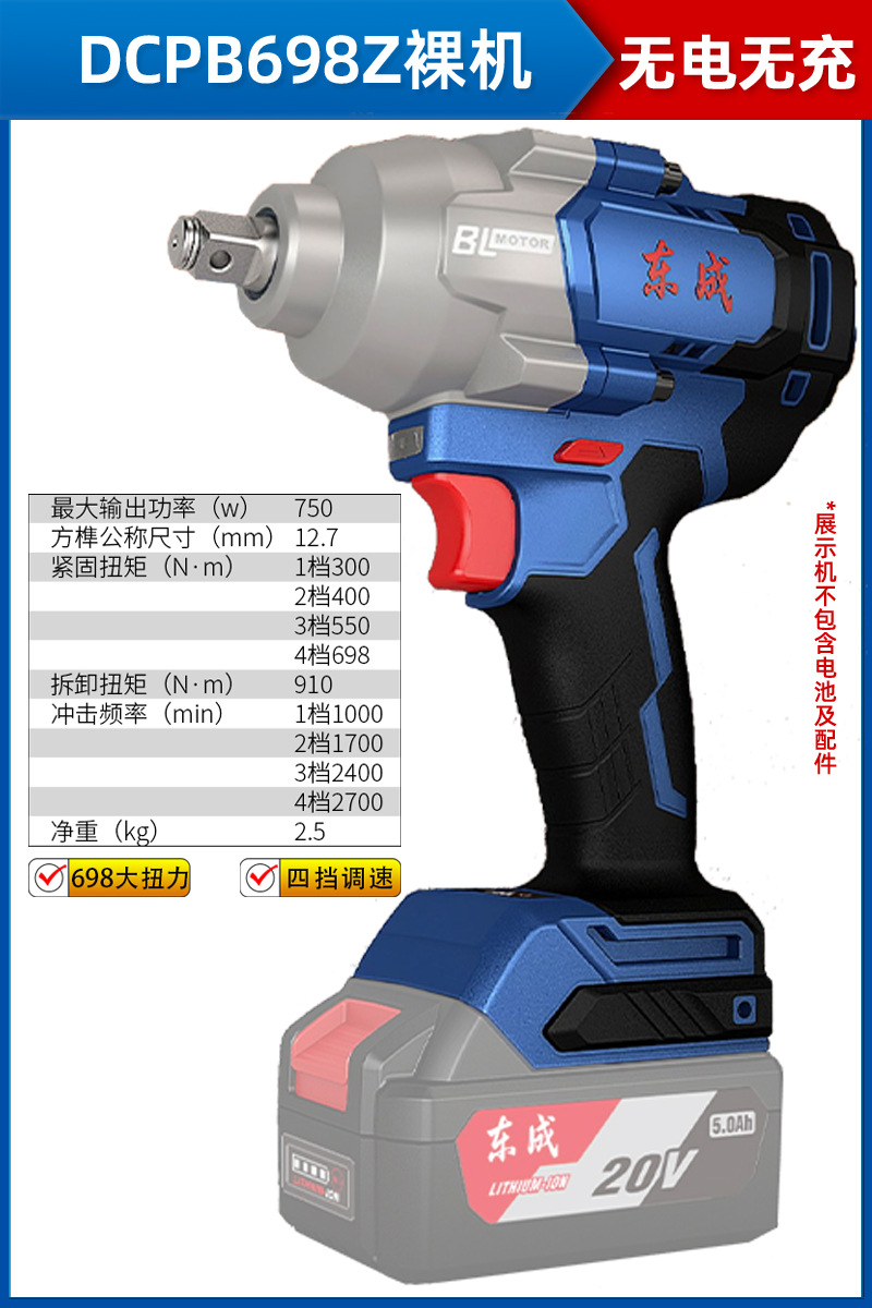 동청 전기 렌치 충전식 브러시리스 충격 렌치 DCPB698/1288 전기 렌치 대형 토크 자동 수리 링