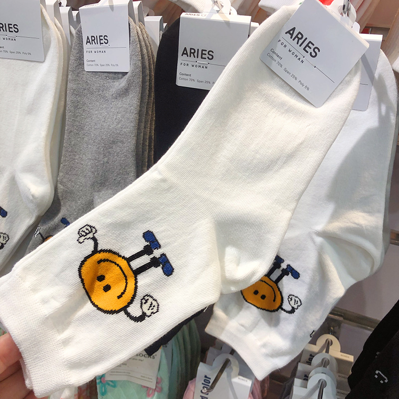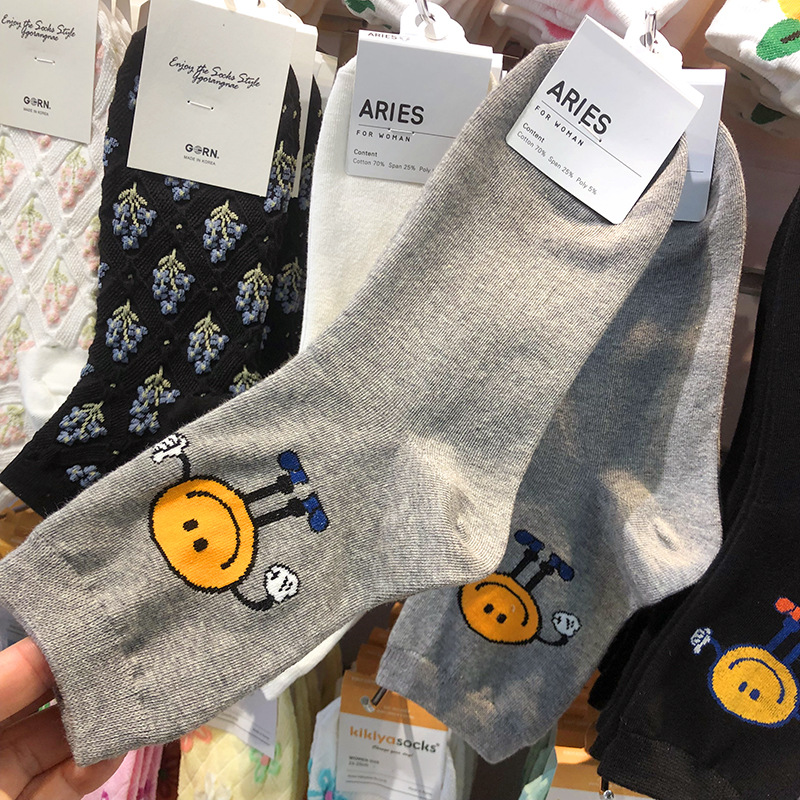 [재고] 한국 ARIES 봄과 여름 새 양말 큰 행복 미소 소녀 양말 만화 미드 튜브 양말스토어 가기