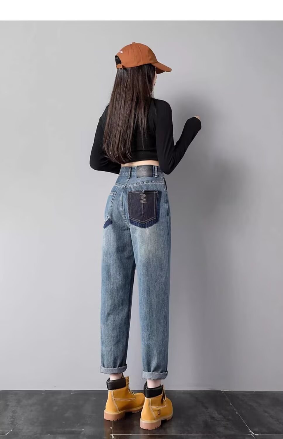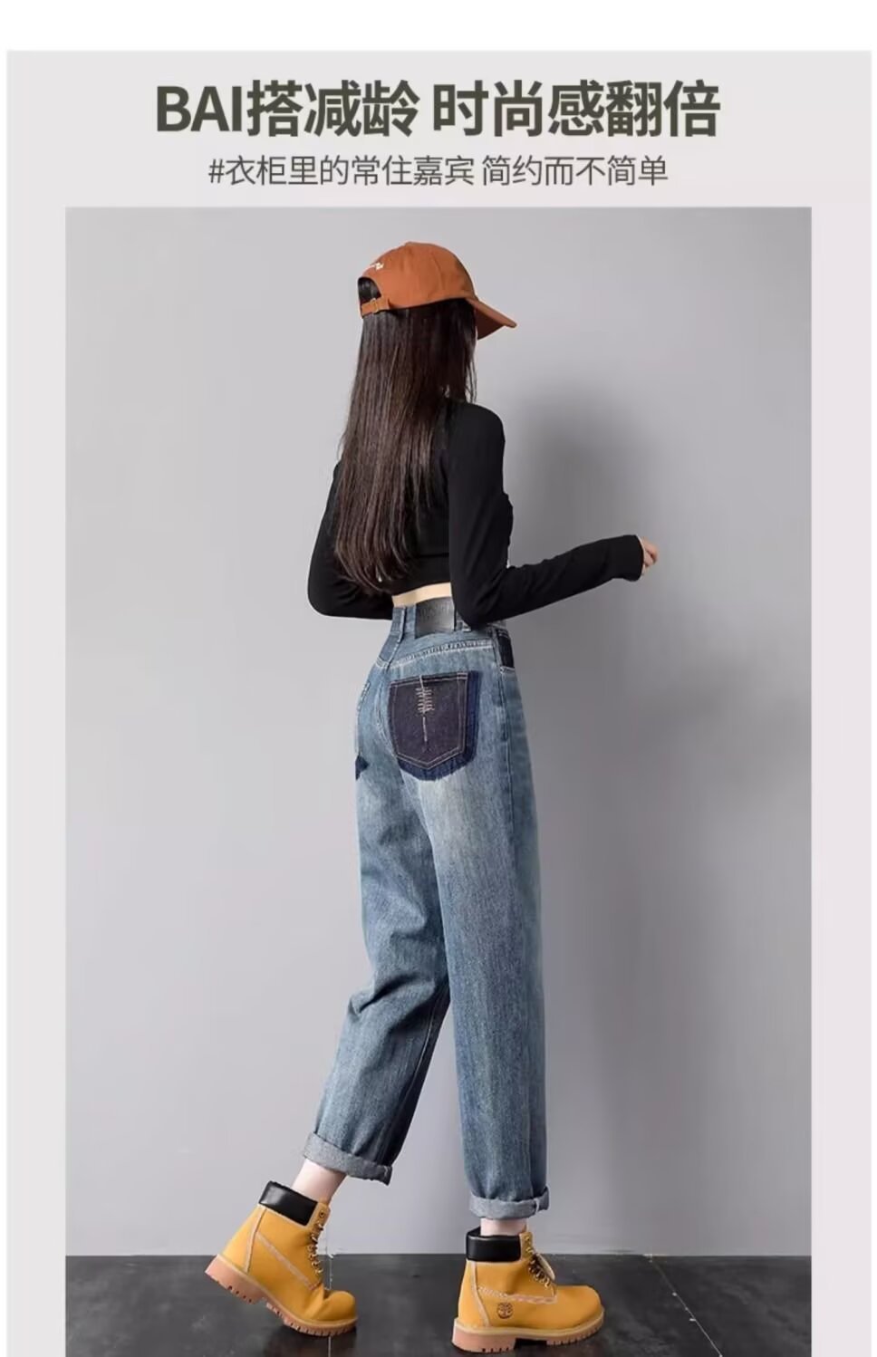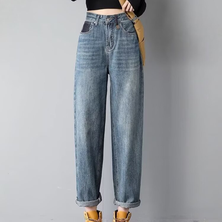2025 여름 패션 높은 허리 할란 청바지 여성 작은 튀김 거리 대비 컬러 슬림 핏 아빠 바지 트렌디스토어 가기