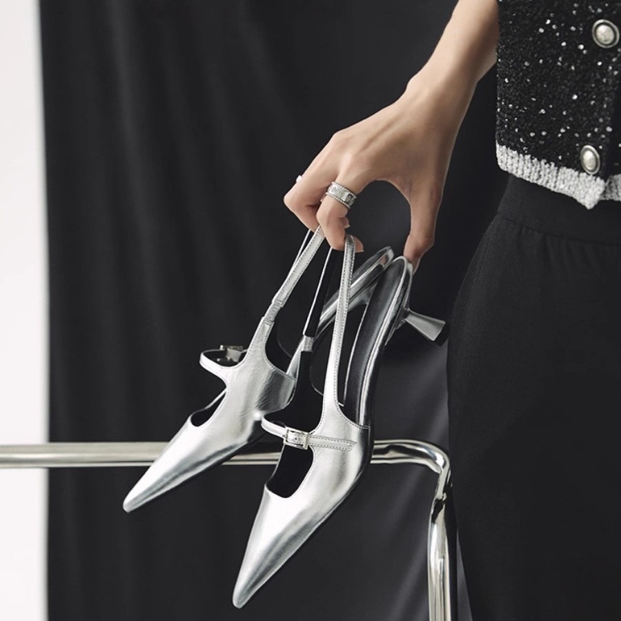 아름다운 우아한 한국 스타 스타일 얇은 힐 바오 터우 샌들 여성용 봄 여름과 가을을 가리키는 하이힐 빈 신발