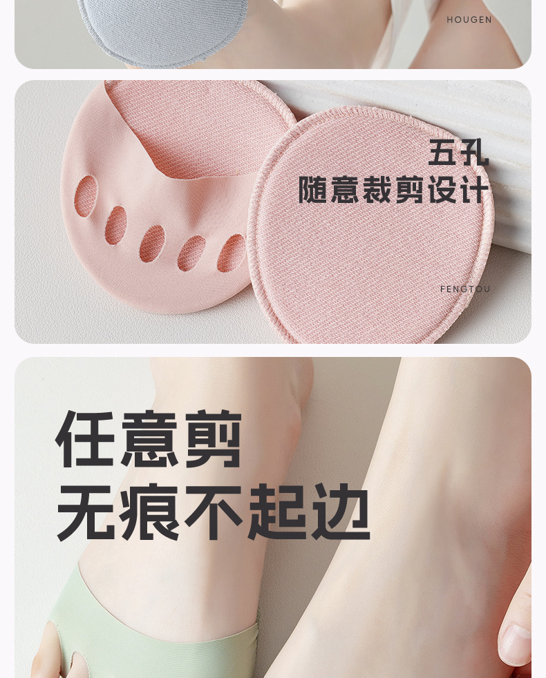 반쪽 종려 양말 여성용 오발가락 보이지 않는 미끄럼 방지 발 아티팩트 하이힐 패드 반쪽 패드 보이지 않는 양말스토어 가기